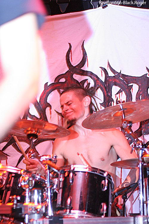 Voyageons plus haut en Europe dans la scène brutale death avec les Allemands de DEFEATED SANITY qui ne sont pas venus là pour rigoler c’est sûr. Le groupe à subit depuis sa création en 1994 pas mal de changements de line-up c’est un fait. Mais leur death/grind cruel et imagé maintient le bon cap de l’horreur brutale des débuts. Ici on frappe fort, même si en début de set le son semble assez brouillon avec cette caisse claire qui surnage dans les envois saturés et morbides en diable. En second partie du set, on entend enfin la guitare aux accents plus aventureux, plus progressifs, avec des soli maudits vous donnant la « chair de poule ». Et, cerise sur le gâteau empoisonné, le public jusqu’alors assez « endormi » se réveille enfin pour tout bousculer et faire tanguer la péniche. Leur prestation est un peu écourtée du fait du timming serré, mais cela fut sans conteste une réussite, courte et intense, saignante tout simplement.