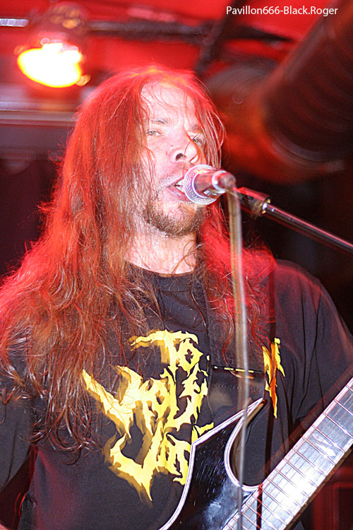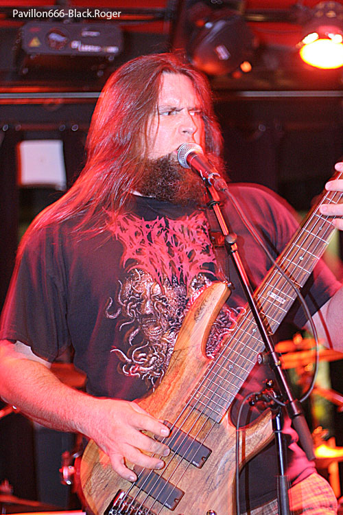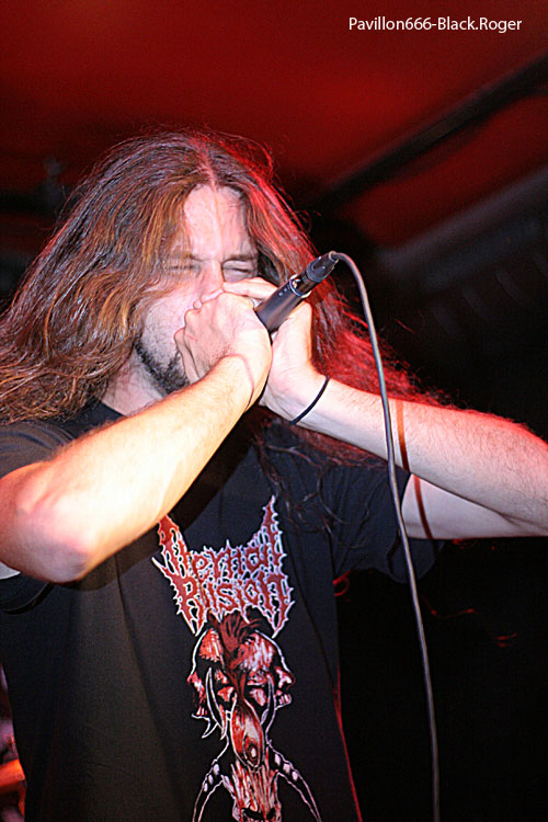 On s’affaire, on s’affaire sur la petite scène pour installer la tête d’affiche de la soirée, les ricains de l’Indiana, GORGASM. Le nom du groupe, parle de lui-même, ce groupe qui a déjà fait trembler beaucoup de salles du monde entier depuis plus de quinze ans. Oui mais voilà, après huit ans de quasi silence radio, le groupe effectue son « comeback » avec un nouvel album « Orgy Of Murder » et un nouveau line-up. Damian, « Tom » Leski est le seul survivant de la formation et s’est adjoint les services de trois HUMAN FILLETED. Alors surprise, que va donner la formation en live maintenant ? Réponse tout de suite, décollage immédiat, attachez vos ceintures de sécurité. La réponse est sans appel avec les nouveaux morceaux « Dirty Cunt Beatdown » et les plus anciens comme « Seminal Embalment » et « Clitoral Circumcision » qui nous collent contre les parois de la Marquise, argh ! La présence charismatique du chanteur/bassiste nous « remonte les bretelles » avec sa voix d’outre-tombe et sa basse turbo sans égale dans le style. Les riffs sont cruels et assassins, il n’y aura pas de survivants à la tuerie de ce soir, il faut l’accepter et se régaler la cervelle sur des tempos variés envoyés par un batteur au savoir faire exemplaire. Les nouvelles compositions « Erotic Dislimbig » et « Blood Lust » nous rassurent quant à l’avenir de GORGASM qui revient sur le devant de la scène en restant l’un des groupes les plus marquants de la scène death/grind/gore c.q.f.d. Evidemment quand c’est bon cela parait encore plus court et ceux des premiers rangs en nage, en veulent encore plus. Alors les rappels sont inévitables et bien juteux, dynamiques au possible, excellents tout simplement.