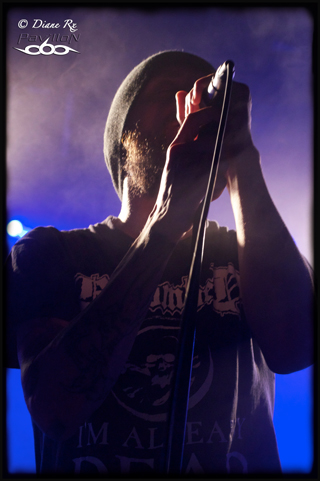 Manne, en revanche, est la légère déception du show : toujours retranché derrière son pied de micro, un peu à l’ouest –alcool comme au Hellfest?-, pas toujours très juste –il aura du mal sur les aigus du final de Soulcarvers et sur les graves de A Storm Inside-, il est un peu le leader fantôme du groupe, comme l’annonçait son tee-shirt portant l’inscription « I’m already dead ». Pour autant, je dois reconnaître qu’une telle voix en studio est probablement difficile à rendre aussi bien en live, où le son est moins « léché ». Même si cela sied finalement bien à la musique du combo, cela me prive d’une certaine émotion, ce qui ajouté à une setlist qui a un peu plus misé sur les morceaux efficaces que les morceaux planants –j’aurais aimé un Chamber et/ou un Grain comme ils l’ont fait en Finlande-, ôte finalement une part de la magie à laquelle je m’attendais en me rendant au concert, coûtant la mention coup de cœur. Cela étant dit, c’est bien sûr un très bon concert qui nous est offert, avec un son irréprochable et de bonnes surprises comme l’instrumentale 22 :22-Nihil et surtout, surtout, la véritable tuerie Hold on thin Line, seule représentante –mais quelle représentante !- du tout premier album du groupe, Guided by Fire qui enflammera d’ailleurs le public qui se presse un peu plus près de la scène.