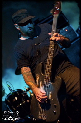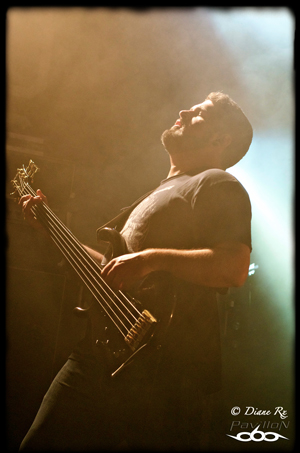 Le positionnement des musiciens est le même que chez Intronaut, le bassiste central centrant toute l’expressivité –headbang lourd, visage un peu plus expressif que ses compères- et arborant une Fender bleu délavé avec de grosses traces de rayures, typiquement dans l’esprit quasi grunge qui ressort du groupe. Allez savoir pourquoi, je les aurais bien vu ouvrir pour les Smashing Pumpkins en novembre prochain si la salle n’était pas aussi orientée grand public. Il poussera même la chansonnette sur quelques morceaux, mais on n’en entendra hélas pas grand chose.