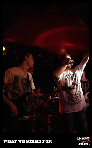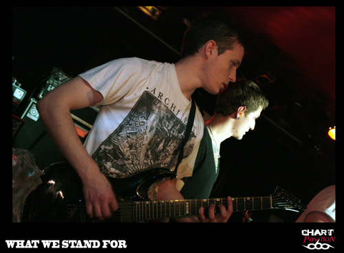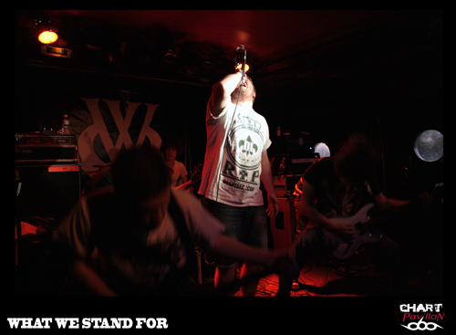 La jeune formation lyonnaise WHAT WE STAND FOR ouvre les hostilités peu avant 19h00. Il s’agit pour eux ce soir d’un véritable baptême du feu puisqu’ils sont là pour leur premier concert. Qu’espérer de mieux pour un tout jeune groupe en guise de premier concert que d’ouvrir pour une telle soirée ? C’est aussi une chose excessivement rare pour une organisation que de confier ce genre de rôle à un groupe dans une telle situation. En tout cas, pour WHAT WE STAND FOR, le pari est réussi. Le groupe s’en sort très bien et tout se passe pour le mieux. Le public a l’air satisfait de ce à quoi il assiste même si le plus gros des troupes reste encore à venir. Ne prenez pas la grosse tête braves garçons, le plus dur, c’est souvent le deuxième concert car on a souvent tendance à se reposer sur ses acquis lorsque tout s’est bien passé la première fois. En tout cas, il ne reste plus qu’à leur souhaiter bonne chance pour la suite.