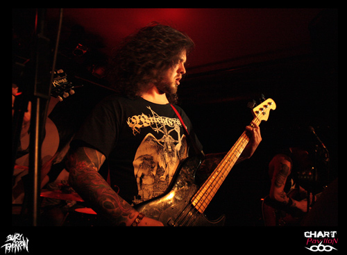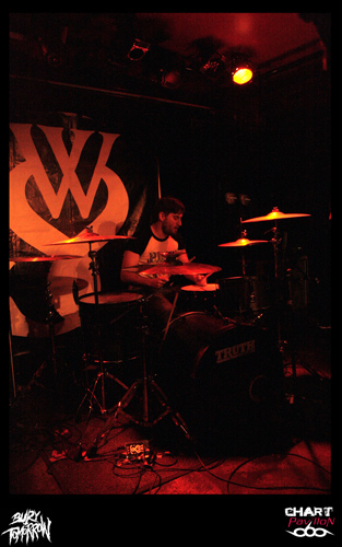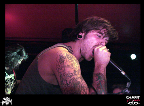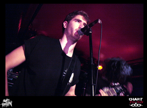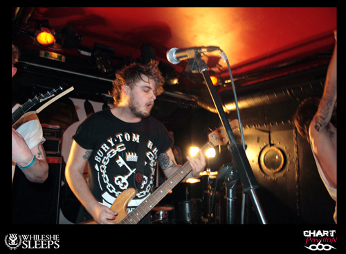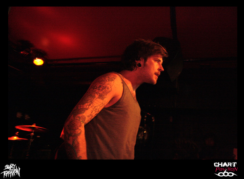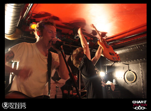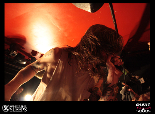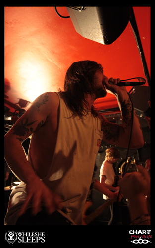 Le Royaume Uni est le spécialiste du rock et ce n’est pas une nouveauté. Ce rock a toujours su évoluer et c’est loin d’être terminé. BURY TOMORROW est un nouvel exemple de ce que le Royaume Uni est capable de faire sortir de ses frontières en terme de savoir faire rock n’ roll. OK, parlons plutôt de Hardcore même si enfermer un groupe dans une catégorie n’est pas réellement ma spécialité. En effet, à l’écoute de ce groupe, on est interpellé par les différents aspects qui se dégagent de sa musique. Certes l’énergie première est terriblement empreinte d’une énergie typiquement hardcore mais certains passages sont réellement metal et d’autres parties plus mélodieuses sont aussi issues d’une forme de pop, de punk. Le fait est que la prestation scénique a tendance à niveler un peu tous ces aspects pour ne laisser transparaître qu’un ensemble homogène et terriblement efficace. Si WHILE SHE SLEEPS n’avait pas joué ensuite, j’aurais sans doute comparé BURY TOMORROW à une sorte de bulldozer. Autant dire qu’un bulldozer dans une péniche, ça fait du mal. Le seul regret que l’on peut avoir sur cette prestation, c’est sa durée un peu limitée par le nombre de groupes et les changements de plateau. Dommage, il aurait pu être intéressant d’approfondir un peu plus.