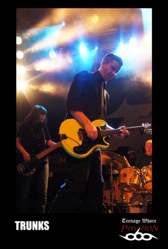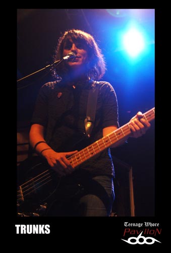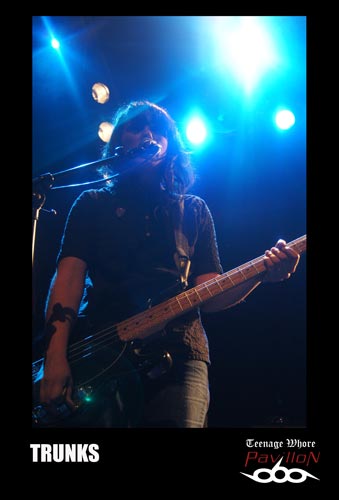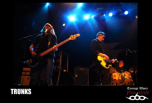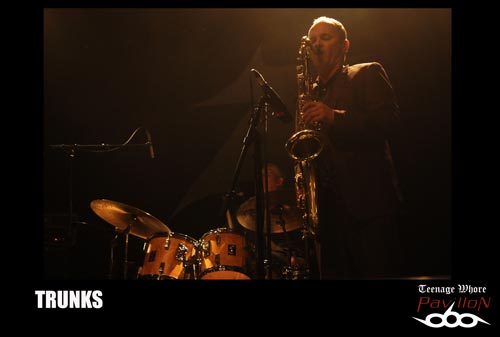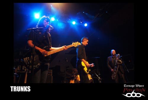 Puis, l’arrivée de la première partie, il s’agit de TRUNKS. Deuxième étonnement, ce groupe français n’a, on peut le dire, rien à voir avec les fous furieux d’ATR. Leur musique est plutôt branchée musique actuelle, avec une pointe de rock n’roll, ainsi que des influences Jazz. Très peu de chant pour ce combo qui joue définitivement pour se faire plaisir. Pas d’artifice, pas de mise en scène inutile, juste une envie de partager un bon moment. On peut ressentir une réelle maturité autant au niveau technique que par rapport à l’émotion dégagée. A la bass, Laetitia chantonnera quelques paroles, mais visiblement trop timide pour partager d’autres mots avec le public, dommage. Pour conclure, TRUNKS nous a permis de passer un bon moment autour d’une bière et de quelques amis. Un peu dommage que le groupe n’est pas forcément plus communiquer avec le public. Comme de réels artistes, ces musiciens ont visiblement une forte tendance à rester dans leur petit monde, mais il faut savoir s’ouvrir et faire partager ce qu’on a à dire.
