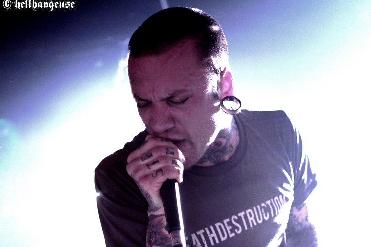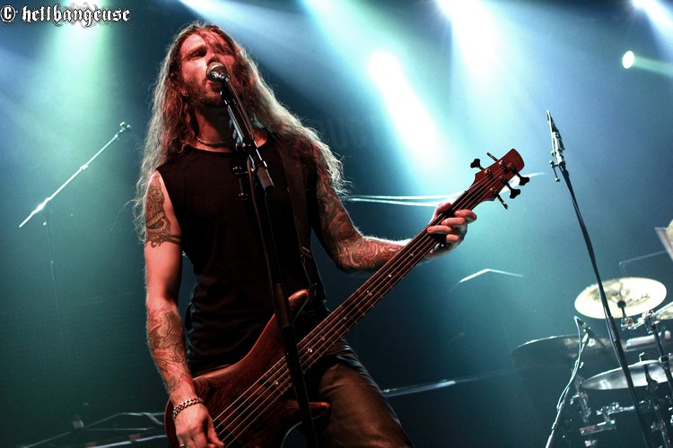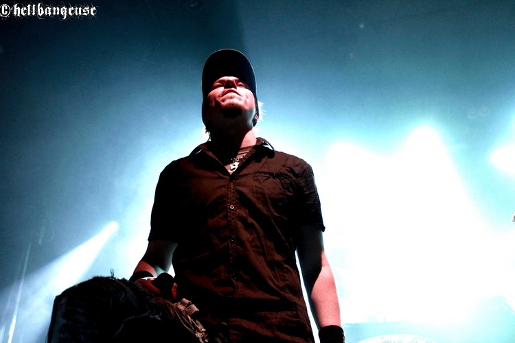 Les suédois de DEATH DESTRUCTION sont d'ailleurs les premiers à s'y coller, avec bonne volonté et énergie à revendre. Difficile quand on vient de Göteborg de ne pas éviter une certaine consanguinité (excusez-moi du mot), c'est donc sans grande surprise qu'on retrouve Fredrik d'HAMMERFALL à la basse, qui joue donc deux fois par soirée, mais également deux membres d'Evergrey à la guitare et à la batterie. Seul le chanteur au look de coreux ne nous rappelle personne d'éminent... Raté, il a lui-même un temps officié dans Nightrage. Bref, tout ce petit monde a décidé ce soir de nous exploser les tympans avec du deathmetal à tendance coreuse, qui se rapproche du Deathcore sans en être pour autant un parfait exemple. La musique du quartet n'a d'ailleurs rien d'originale en soi au niveau des lignes de composition, l'ensemble reste globalement prévisible et sa seule empreinte personnelle semble être une pregnance affirmée de la basse, agréable en soi, mais probablement due à un surmixage pour mettre en avant Fredrik et sa double casquette sur la tournée. DEATH DESTRUCTION envoie néanmoins la sauce avec savoir faire, parvient à dérider une partie du public (sans pour autant transcender tout le monde) grâce à un dynamisme tout au long de la prestation, un son de bonne qualité et la volonté perceptible de donner le meilleur de soi. Une bonne première partie sans prétention démesurée quoi.