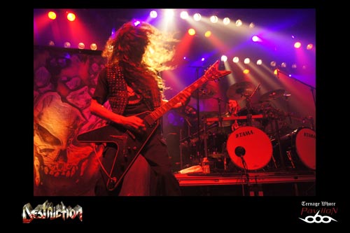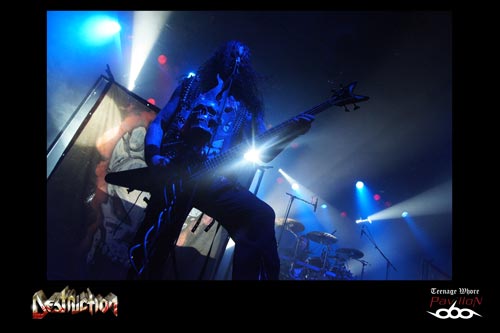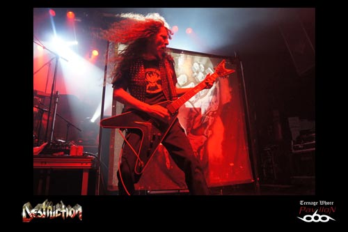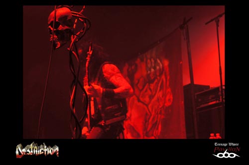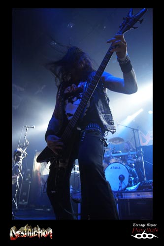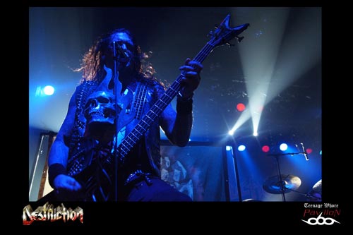 Et c’est parti pour les trois groupes les plus attendus ce soir. C’est à DESTRUCTION de poursuivre ce Thrashfest inébranlable. Ce trio n’a évidemment plus rien à prouver. Chaque apparition est toujours aussi impressionnante. Leur prestation fait tout de suite monter la pression d’un cran. De plus, le groupe a décidé de ravir son public sur scène en interprétant des titres comme « Total Desaster », « Thrash Attack », ou « Bestial Invasion ». DESTRUCTION prend un réel plaisir sur scène, et ce moment est grandement partagé avec le public. Seul petit bémol, le son n’est pas à la hauteur de la prestation. Dans tous les cas, c’est toujours aussi énorme de voir ce trio en live.