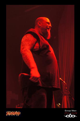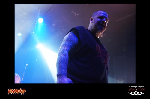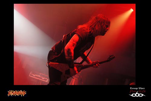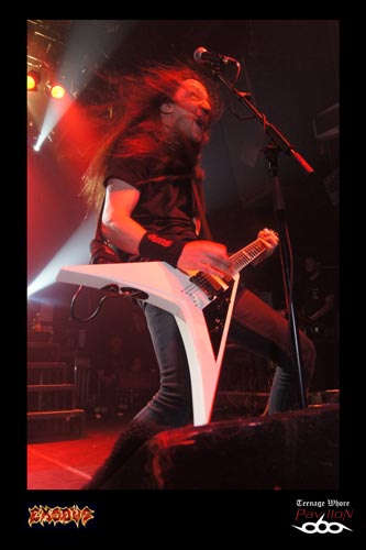 Ensuite, c’est à EXODUS de nous donner une bonne claque. C’est d’ailleurs peut-être le groupe le plus attendu ce soir. Les Californiens semblent être déchainés, tout comme le public à leur arrivé ! EXODUS nous fait l’immense plaisir de nous interpréter une setlist des plus Thrash qui puisse exister. Le combo fait trembler la salle avec des titres tels que « Fabulous Disaster », « Piranha », « Bondes By Blood », ou le mortel « Toxic Waltz » ! Le groupe envoie du lourd ce soir. C’est puissant et efficace. Les fans sont comblés ! EXODUS nous prouve qu’ils sont avant tout proche de leur public en faisant monter à deux reprises un fan sur scène afin de le faire gueuler dans le micro. Un moment tout simplement « thrashement » chaleureux !! Puis, le temps du circle pit de la mort est arrivé. Le public retourne le Bataclan et la salle est en pleine transe. Le groupe fait sensation ce soir, et beaucoup de monde auraient voulu que cela dure toute la nuit. Alors si vous n’avez encore jamais vu EXODUS en concert, et si vous voulez recevoir la claque de votre vie, vous savez ce qu’il vous reste à faire maintenant !