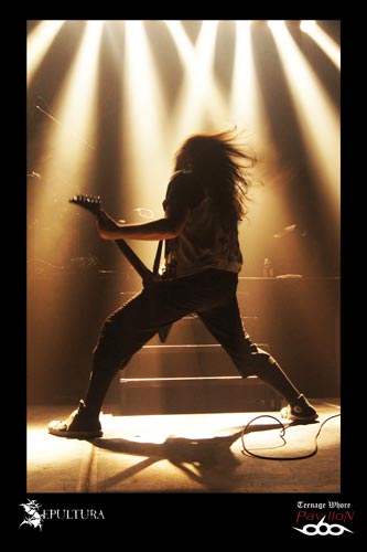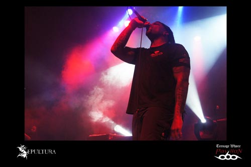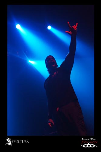 Enfin, place à la tête d’affiche, je parle bien sur de SEPULTURA. Andreas Kisser, avec son look à la Dimebag est le premier à rentrer sur scène. C’est aussi l’occasion pour le groupe de nous présenter son tout nouveau batteur, Eloy Casagrande, à peine âgé de 20 ans ! Derrick Green est bourré d’énergie et saute sur scène tel un vrai « monkey man » ! Le combo joue le joue à fond, et nous interprète des vrais classiques comme « Refuse/Resist », « Desperate Cry », « Dead Embryonic Cells », ou « Territory ». SEPULTURA met le feu et termine glorieusement ce Thrashfest. Le nouveau batteur est une vrai bête de scène. Ce musicien risque d’en étonner plus d’un. Il frappe sa batterie comme s’il avait 20 ans de carrière derrière lui. Ce prodige est à suivre de très près. Le groupe fait exploser le Bataclan, et enchaine les morceaux, tout simplement époustouflant. Les Brésiliens terminent par leur énorme tube « Arise » avant de quitter la scène. Les fans auront même la chance de les rencontrer un peu plus tard dans la soirée, à la sortie du Bataclan, car malgré leur notoriété, SEPULTURA est un des rares groupes à rester proche de leur public.