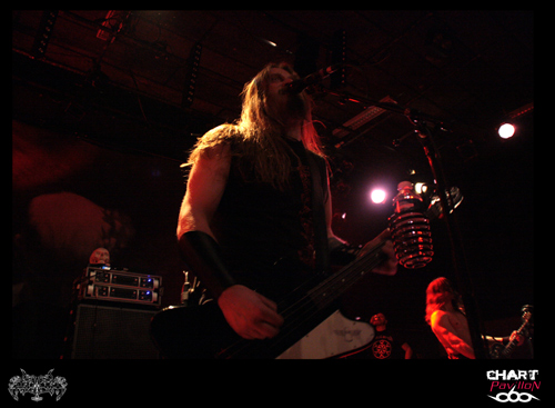 La Norvège est réputée dans le domaine musical pour ses groupes de black metal. Il existe des piliers incontournables qui ont marqué les esprits pour une durée indéterminée tels que MAYHEM, BURZUM, IMMORTAL, EMPEROR et forcément ENSLAVED. Tous ces groupes et tous ces musiciens ont largement contribué à faire évoluer le metal d’une manière fulgurante vers la fin des années 90. Et encore, la plupart d’entre eux jouaient déjà dans la première partie des années 90. ENSLAVED fêtait ses 20 ans de carrière l’année dernière. La vague black metal telle qu’on la connaissait à ses débuts s’est quelque peu essoufflée avec le temps et ces mêmes groupes ont évolué, voir se sont tout simplement arrêtés. C’est le cas d’EMPEROR. En ce qui concerne ENSLAVED, l’évolution musicale du groupe est incontestable. Au fil des années et des albums, ces vikings ont incorporé de nouveaux éléments empruntés à différents styles afin d’enrichir leur production musicale. Certes la base garde de bonnes traces du black metal des débuts mais le rock et même d’une certaine manière le post rock sont venus apporter de nouvelles perspectives à ENSLAVED. Pour s’en convaincre, il n’y a qu’à écouter l’EP « The Sleeping Gods » sorti en 2011. L’autre solution consiste à assister à une prestation du groupe, toujours en promotion pour « Axioma Ethica Odini ». ENSLAVED débarque sur cette scène du CCO avec en introduction « Axioma » puis enchaîne directement sur les deux premiers titres du dernier album, « Ethica Odini » et « Raidho ». L’effet est direct et saisissant. On comprend pourquoi ce groupe est toujours là même si les conditions de la prestation ne sont pas aussi fameuses que le statut du groupe ne devrait le permettre. A prendre certaines directions artistiques, il semblerait bien qu’une partie de leur public les ait un peu oubliés. Grossière erreur au vue de la prestation de ce soir. Certes, « Ground » est terriblement éloigné des racines blacks mais que dire de « Allfaðr Oðinn » datant de 1992, des ambiances très seventies de « Return To Yggdrasill » et de l’incontournable « Ruun ». Le groupe va même beaucoup plus loin en reprenant pour le rappel le fameux « Immigrant Song » de LED ZEPPELIN que le quintet n’hésite pas s’approprier afin de le faire coller à son style avant de nous quitter sur l’incontournable « Isa ».
