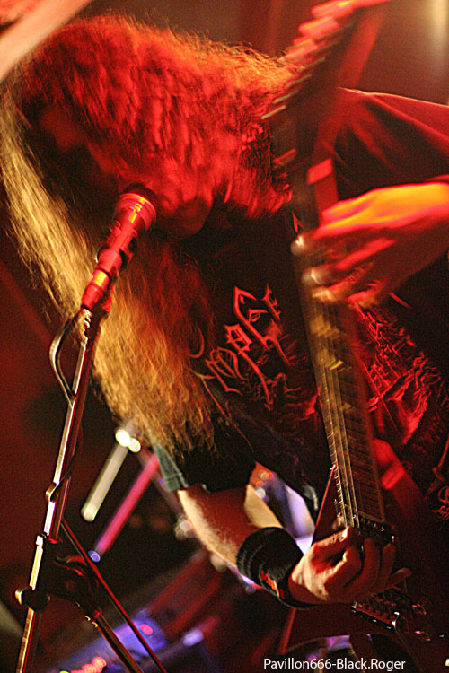 Changement de groupe, changement de métal avec cette fois-ci du death-métal qui nous est proposé par NEPHREN-KA, formation également Auvergnate. C’est avec plaisir que je retrouve sur scène le groupe ce soir car je suis assuré de recevoir dans les conduits auditifs du bon death, percutant, lourd, mais aussi technique juste ce qu’il faut pour ne pas nous perdre dans des envois trop alambiqués. Efficacité donc pour ces musiciens influencés par des groupes tels que NILE bien sûr (rapprocher le nom du groupe avec l’ancienne Egypte), mais aussi par INCANTATION, MORBID ANGEL et autre HATE ETERNAL. C’est donc violent, implacable, maitrisé, le tout propulsé par un frontman charismatique qui nous envoie sévère ses « growls » à la figure. Prestation carrée donc, rien à redire, on en redemande, mais le temps a passé trop vite, alors au plaisir de se revoir comme l’on dit communément. Un seul conseil à donner au groupe : continuez, ne changez rien, vous êtes sur la bonne route du métal extrême et jouissif en même temps.