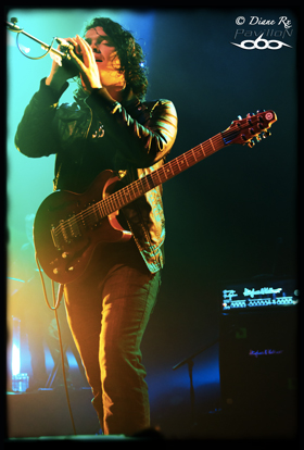 Mais avant de se sentir une âme d’écrivain, penchons-nous d’abord sur leurs compatriotes anglais d’Amplifier chargés d’ouvrir le bal, et se payant le luxe de proposer 55 minutes de musique –assez rare pour être noté. Evoluant dans un style progressif assez classique depuis une dizaine d’années, et bénéficiant de chroniques plutôt très favorables, le groupe dégage une bonne énergie et une très bonne présence sur scène, le frontman Sel Balamir dégageant notamment cette aura d’ironie décidément marque de fabrique des groupes du genre. Mais le set souffre de morceaux répétitifs et monolithiques, surtout pour la majorité des novices présents ce soir. Il aurait peut-être été plus judicieux que la prestation soit plus courte afin qu’elle soit plus percutante et plus marquante pour les auditeurs. En revanche, leur total look pieuvre (jusqu’à la cravate !) calqué sur l’artwork du dernier album bien nommé « The Octopus » en aura intrigué plus d’un.