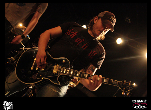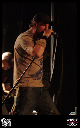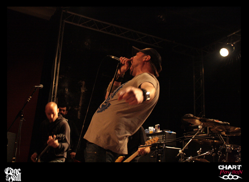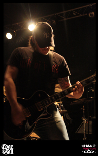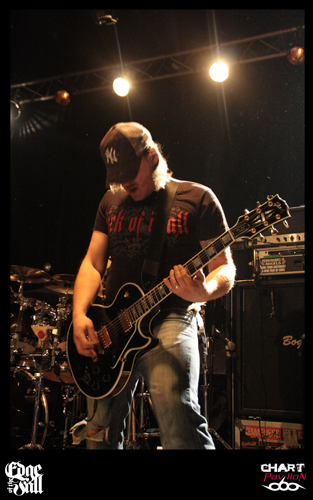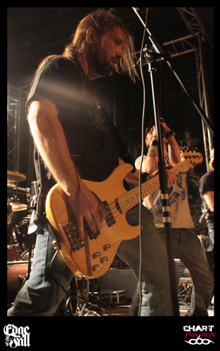 Ce sont le lyonnais d’EDGE OF THE FALL qui s’y colle les premiers, sans mauvais jeu de mot. La formation lyonnaise balance un gros rock efficace. Le groove est prenant et le son vraiment très bon dans cette salle. On est très vite pris dans le set efficace et sans bavure du quintet. La bonne énergie qui règne sur scène se transmet rapidement au public qui déjà commence à rentrer de plein pied dans la soirée. Les influences sont larges dans leur musique. Le Thrash et le Hardcore sont les ingrédients les plus radicaux que l’on puisse trouver pour faire exploser l’ambiance. Prestation réussie et groupe à suivre de prêt.