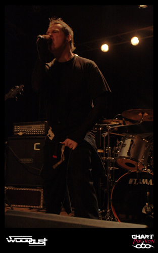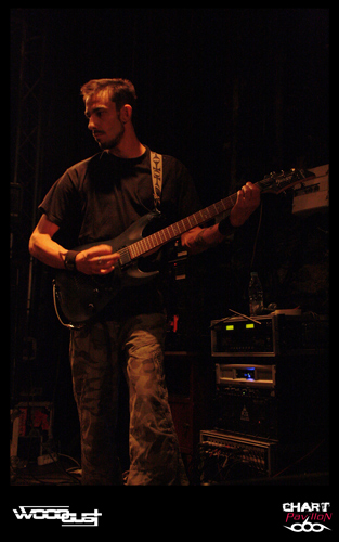 C’est ensuite au tour des stéphanois de WOOD-DUST de prendre d’assaut cette scène du Larsen. Le projet de Wood, le chanteur du groupe remonte à 2003 et les habitués reconnaissent un groupe que l’on a souvent vu tourner dans les salles de Saint-Etienne y compris au Fil. WOOD-DUST est largement influencé par des groupes tels que COAL CHAMBER, KORN voir même RAMMSTEIN dont il fait une citation en fin de set. Cette tendance au néo-metal est loin d’être désagréable et quelque peu différente de ce que l’on a tendance à écouter en ce moment. Disons que la déferlante néo-metal s’est quelque peu calmée depuis quelques années. WOOD-DUST est resté fidèle à ses racines et c’est tant mieux. La prestation est encore une fois efficace. Décidemment, cette soirée est de bonne augure et on ne regrette pas cette ambiance qui à mon avis doit être bien différente du côté des black métalleux. Ici, c’est chaleureux et le public est loin de rester stoïque malgré cet évènement programmé en fin de jour férié.