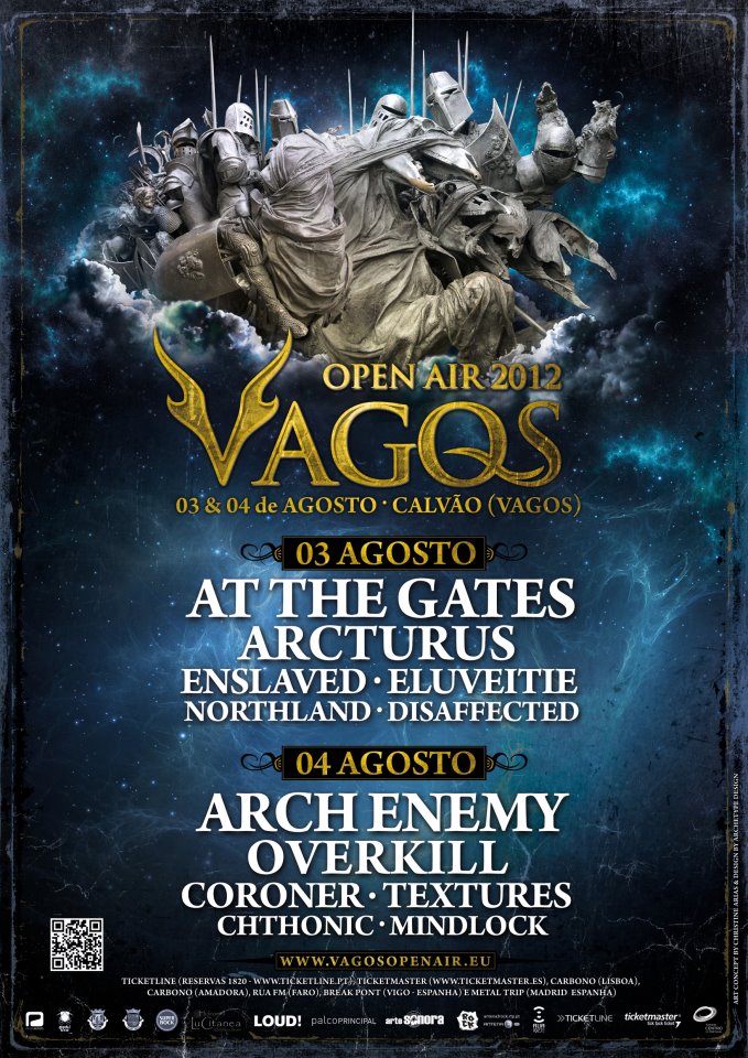 Le Portugal n'est pas le premier pays vers lequel je me tournerai concernant les festivals Hard/Metal estivaux. Pourtant le pays dispose d'une scène relativement prolifique lorsque je constate les annonces de concerts là-bas (ou tout du moins surtout sur Porto), ainsi que celles des festivals comme le SWR au mois d'avril (qui aura vu cette année passer CANDLEMASS, IMMORTAL ou encore ASPHYX et HYPOCRISY). Mais c'est sans compter sur un petit Open Air du côté d'Ilhavo (centre littoral): le Vagos Open Air ! Ignorant totalement son existence, c'est par le biais d'un ami (merci Bastardator !) et ma présence non loin du site pour des raisons professionnelles qui m'auront fait se pencher sur ce festival à taille humaine qui l'air de rien commence à se faire connaître hors de nos frontières et qui a vu passer nombre de belles têtes d'affiches lors des 3 précédentes éditions (OPETH, MORBID ANGEL, MESHUGGAH, CARCASS, THE GATHERING, AMON AMARTH, et pleins d'autres...)
