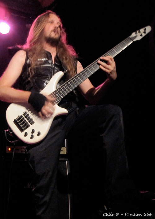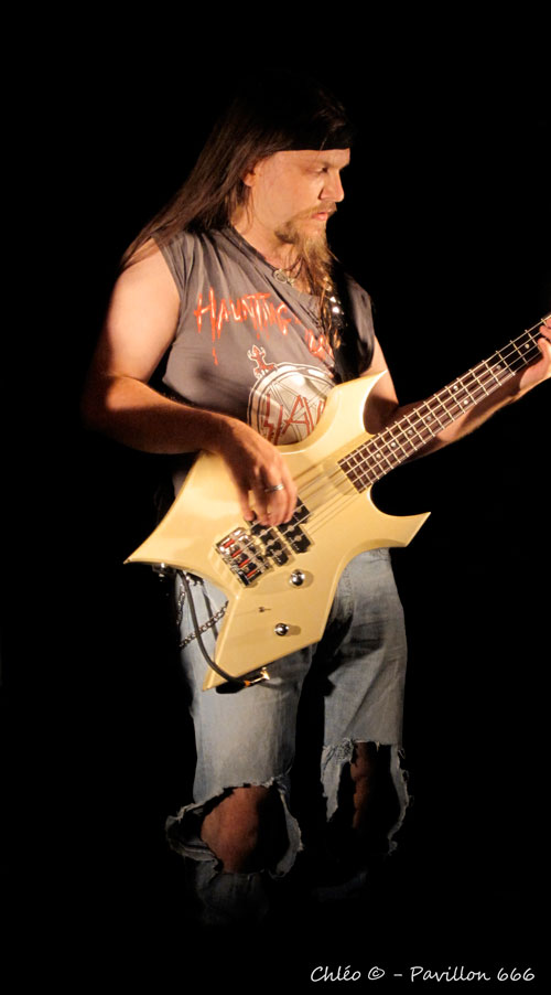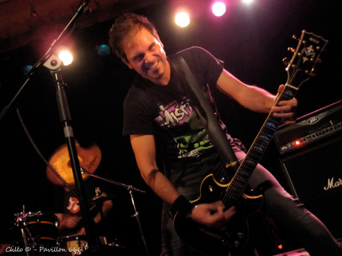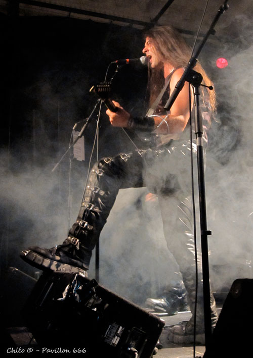 Polarys est un concept à lui tout seul : c’est un mélange de Heavy, Trash, Prog et Power Metal alternant quelques passages un peu plus mélodiques. Je n’ai aucun mal à me mettre dans l’ambiance. Les riffs rapides et structurés accompagnent avec justesse le chant clair et la rythmique passionnée de la batterie, créant ainsi une harmonie musicale certaine. Vêtus de costumes dignes d’un film de science-fiction, les cinq musiciens nous offrent une prestation des plus originales. Je reconnais par moment quelques-unes de leurs influences telles que Judas Priest pour les riffs enragés, Helloween pour le côté Heavy ou encore Dream Theater pour le côté Prog. Ils n’ont aucun mal à conquérir les spectateurs qui sont visiblement déjà envoutés. Mais comme on dit, toute bonne chose à une fin, et le vaisseau spatial Polarys ne tarde pas à s’envoler pour laisser place au trio déjanté qui les succède…