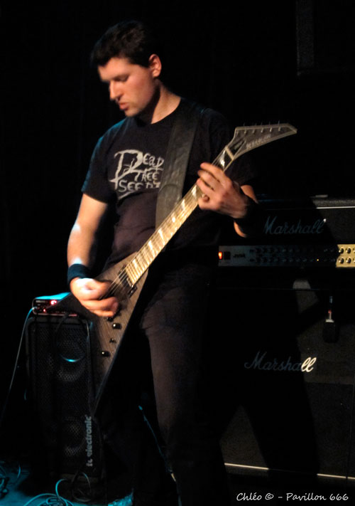 Lorsque Dead Tree Seeds arrive sur scène, je ne sais pas vraiment à quoi m’attendre, n’ayant jamais entendu parler du groupe auparavant, je le découvre ce soir. Le chanteur, arborant une veste à patchs (ou le contraire..), annonce la couleur. Je perçois des influences musicales Old School venant des profondeurs des 80’s/90’s, tels que Megadeth, Slayer ou Pantera. Les rythmiques de la batterie donnent le ton et les riffs électriques des guitares forment un ensemble stable et structuré. Renforcé d’une voix claire, déviant parfois vers le Trash, les musiciens de Dead Tree Seeds nous offre du show, de la spontanéité et de l’énergie. Entre Rock’n’Roll et Hard Rock, le résultat obtenu est une sorte de cocktail explosif qui se savoure comme une bonne bière bien fraiche !