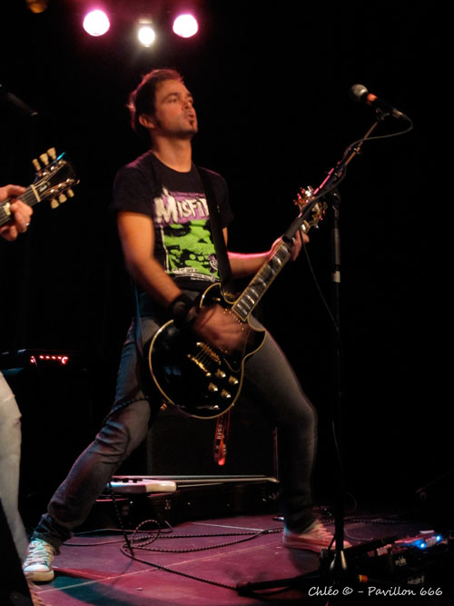 Maciste, c’est comme une Harley lancée à plein régime dans le désert texan ! Amputé d’un bassiste, cela ne les empêche pas de mettre le feu sur scène et d’en faire leur terrain de jeu durant toute l’intégralité de leur set. J’ai en face de moi un guitariste-chanteur qui semble complètement possédé. Il donne toute son énergie et ça se voit ! Tel un certain Axl Rose dans sa meilleure période, il envahit la scène avec ses riffs indisciplinés. Des bruits de couloir disent que la folie est contagieuse et j’en ai la confirmation en observant le second guitariste, qui se lance dans des riffs effréné et rebelles, qui contrastent parfaitement avec les rythmes du batteur aussi furieux (voire plus !) que ses compagnons de scène. Bref, Maciste ça déboite ! Une énergie musicale à la Nashville Pussy qui ne me laisse absolument pas indifférente. Sur les derniers morceaux, un bassiste fait son apparition, ce qui renforce encore plus cet esprit « Hard Rock Survitaminé ». Ils le disent eux-mêmes et ce n’est pas moi qui vais les contredire…