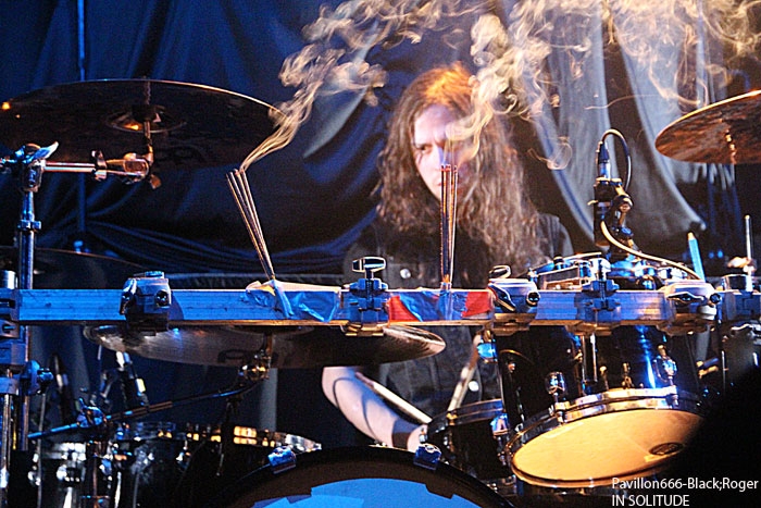 L’arrivée sur les planches se fait bien sur avec le single « Blow Your Trumpets Gabriel » avec un Nergal intronisant la messe noire encapuchonné, tenant à bout de bras des torches, seules lumières au départ. Suivent « Ora Pro Nobis Lucifer », « Conquer All » et « Decade Of Therion », des anciennes compositions. Mais « Furor Divinus », « The Satanist » et en fin de set « O Father O Satan O Sun » apporterons les ambiances glauques voulues par le nouvel opus qui vient juste de voir le jour. Cet opus qui nous replonge au plus profond des noirceurs en l’absence de lumière, du pur black-metal, un signe ?