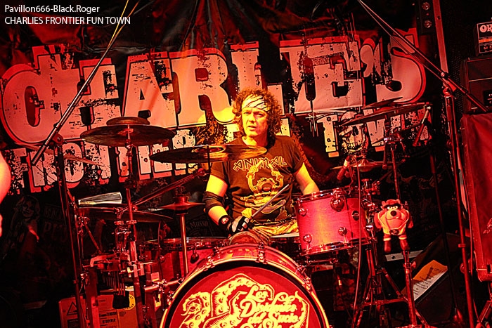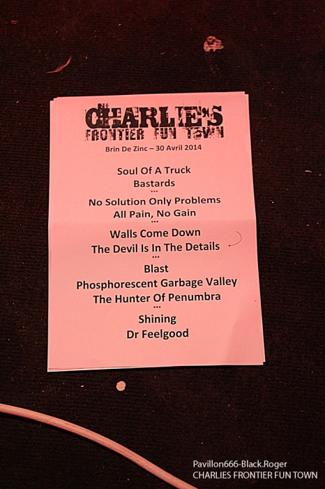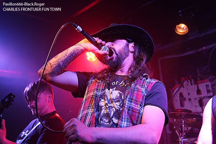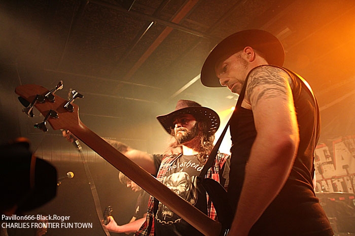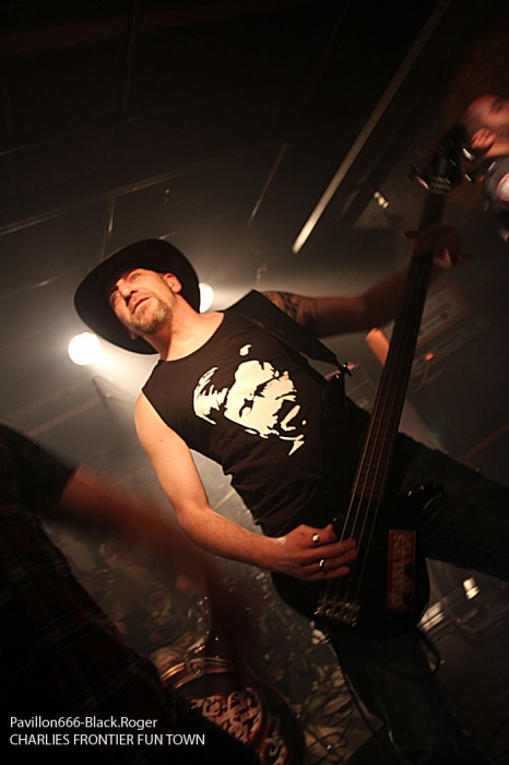 CHARLIE’S FRONTIER FUN TOWN ouvre le feu donc devant une assistance bien chaude, prête à en découdre avec du binaire en folie. Et dès les premiers titres « Soul Of A Truck », « Bastards », et « NO Solution Only Problems », l’ambiance est installée pour la soirée. Les musiciens de Grenoble ne sont pas des « manches », ils ont déjà opéré dans plusieurs formations Dauphinoises dans le milieu métal, et cela se ressent bien sur scène. Le son est globalement bon ce soir et les brûlots stoner de CHARLIE font mouche en accrochant nos petites têtes de rockeurs invétérés. On profite bien entendu des compositions de leur premier opus « Moloko Vellocet », mais pas que… Le chant rocailleux est limite aboyé, les grattes « miaulent », la basse ronronne, la batterie tabasse sec. Et avec une bonne dose d’ironie, de dérision et de non conformisme, ils mettent,le feu là où ils passent, comme ce soir à Chambéry. Du bon rock labellisé et métallisé qui en a dans la pantalon, voilà ce que nous proposent ceux de l’Isère, et figurez vous on aime ça dans cette ambiance de « ouf » avec les manches de guitare qui vous frôlent la tignasse, et ce bon son rock n’roll qui défonce nos tympans. On termine avec tout le monde sur scène, groupes amis et autres despérados.