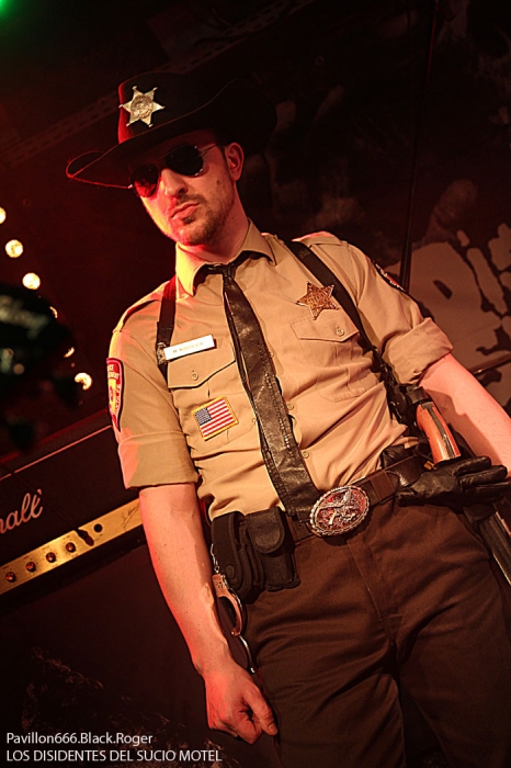 Devant nous, cinq musiciens avec un peu de clavier pour les fonds sonores invitant au voyage, à la route 66 (666 ?). Bien sûr le groupe ne peut monter sur scène que sous la surveillance de l’odieux shérif Rudolvski qui n’attend que le moment de vous mettre les menottes où de vous mettre dans les yeux le faisceau de sa lampe torche.