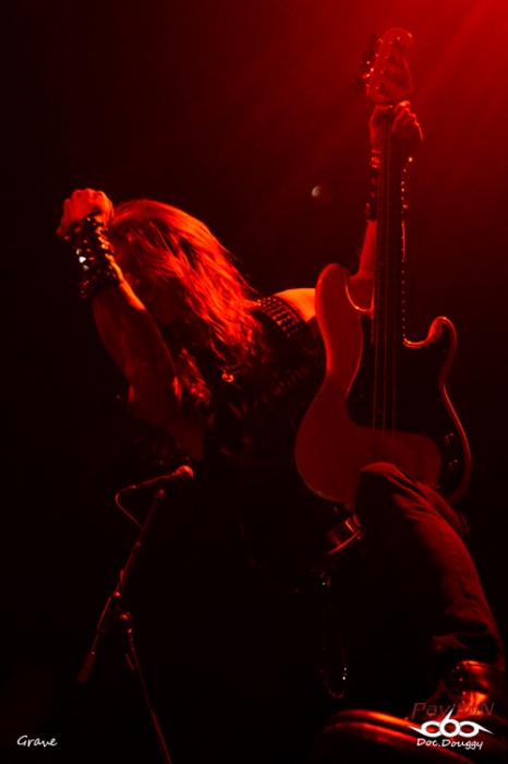 Retour en Main avec l'une des prestations que j'attendais le plus : GRAVE. Alors qu' "Endless Procession of Souls", le petit dernier en date (2012) signait un nouveau line-up et un dixième album, les 45 minutes imposées aux Suédois ont de quoi ravir les fans de "Swedish Old School". Alors qu'Ola Lindgren reste à grimacer derrière son micro, ce sont un Tobias (basse) et un Mika (guitare) qui sont déchaînés et n'arrêtent pas la prise de pose pour le bonheur des photographes. Un son à l'honneur dans cette grande salle pour une prestation qui relève ses promesses. Très à l'aise, le combo revient sur une carrière de plus de 20 ans et sans oublier le dernier avec "Amongst Marble and the Dead" et "Wind of Chains", s'attardent sur ce qui a assis leur notoriété: "Eroded", "Into the Grave", "Christi(ns)anity", un "You'll Never See" qui m'arrachera les cervicales et nous quittent sur un morceau de leur dernier E.P "Morbid Ascent". Y'a plus qu'à creuser maintenant...
