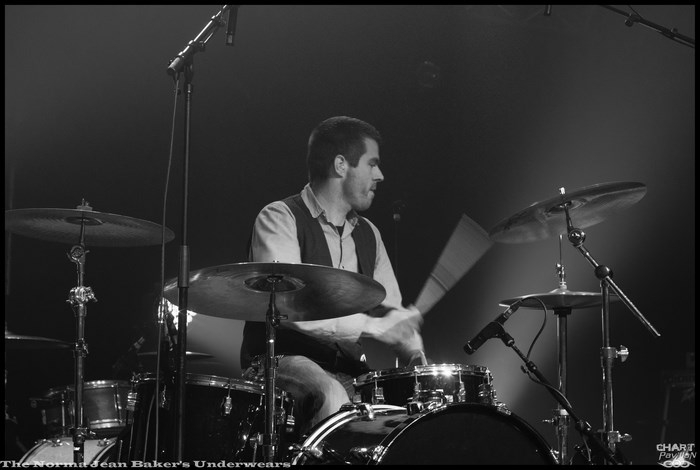 Mais avant tout cela nous avons rendez-vous avec THE NORMA JEAN BAKER’S UNDERWEARS. Il s’agit d’un trio stéphanois que les locaux auront peut-être croisé dans les bars de Saint-Etienne. Avec deux guitaristes et un batteur, le groupe propose un rock très énergique inspiré par un mélange des classiques des années 60/70 et d’une dose de punk rock noise. L’efficacité et l’énergie sont au rendez-vous. Malgré une grande scène pas toujours facile à exploiter le groupe occupe très bien l’espace, à sa manière. C’est aussi dû à un charisme assez développé chez ces musiciens. La prestation est au rendez-vous et on ressort assez conquis par THE NORMA JEAN BAKER’S UNDERWEARS.