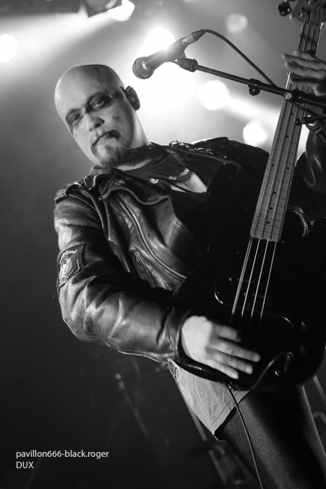 Le trio se complait dans un black old-school, franc du collier, sans fioritures, mais avec une énergie et une violence redoutables. « Lanleff » leur dernier EP vinyl de 2014 avait du vous mettre « la puce à l’oreille » entre autres. Et là, cet après-midi DUX fait ronfler les lignes de basse, met en avant ses riffs ciselés et redoutables avec un chant sauvage d’écorché vif. Une petite demi-heure de de black true et cru bien intense qui permet d’ouvrir les débats avec un bon son SVP et un public interressé.