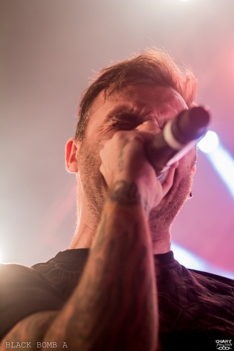 C'est BLACK BOMB A qui prend la relève avec son hardcore ravageur. La présence d'Arno et Poun au chant apporte une dynamique visuelle qui comme d'habitude fait son effet. Il est évident que sans ces deux-là, BLACK BOMB A ne serait pas tout à fait le même groupe tant ils apportent une énergie incroyable. Il n'y a qu'à observer Poun se tortiller dans tous les sens pour comprendre. D'ailleurs, le retour d'Arno au chant est une aubaine pour BLACK BOMB A tant ces deux-là se complètent à merveille. Les avoir sur cette affiche et à ce niveau là est fort rafraîchissant. On nous a promis une bonne soirée sur le papier et dans les faits c'est incontestablement réussi. Même s'il est encore un peu tôt, le Transbordeur s'est bien rempli et la fosse explose déjà à grands coups de circle pit et de wall of death.