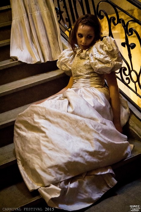 Les zombies sont à l'honneur ce samedi avec un atelier maquillage placé à l'extérieur de la salle Grenette. C'est un bon moyen de se mettre dans le thème et étant donné que la salle est placée en plein centre de la ville, c'est aussi un moyen intéressant d'inviter la population locale à prendre part au festival. On voit donc des zombies circuler dans les rues de la ville, jusque dans le musée du tissage qui se trouve non loin. La compagnie de danse contemporaine AMCEMAO a investi les lieux. Habillées d'anciennes robes de mariées ces 4 danseuses se transforment en fantômes hantant le musée parmi les nombreux spectateurs. Une très belle réussite tandis que le groupe COREDUMP balance son hardcore metal à l'étage de la salle Grenette.
