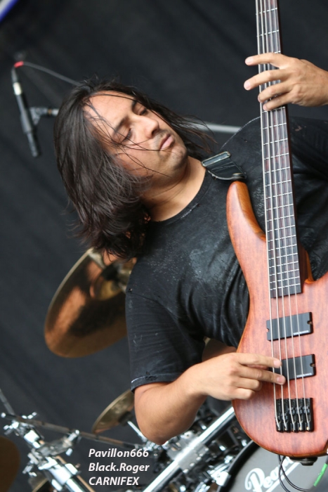 Son chant guttural se fond à merveille dans les compositions du groupe. Par ailleurs le groupe à une énergie de malade sur scène et la communique aisément à la foule qui slamme à tout va.