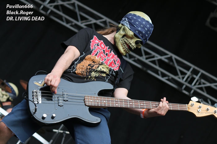 J’arrive juste à temps devant la mainstage à 17heures 25 pour voir le show squelletique de DR. LIVING DEAD.