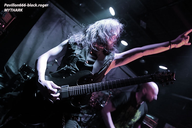 D’entrée de jeu l’entité MYTHARK née sur les pentes des « crassiers » de St-Etienne nous éclabousse de son et de présence énergique avec un certain black/death de bon aloi. Les samples d’ambiance en fond d’écran donnent une dimension assez glauque et lugubre pour des compositions au demeurant fortes, puissantes et somme toute assez agressives en s’inspirant des mythes et légendes sorties de certains enfers démoniaques.