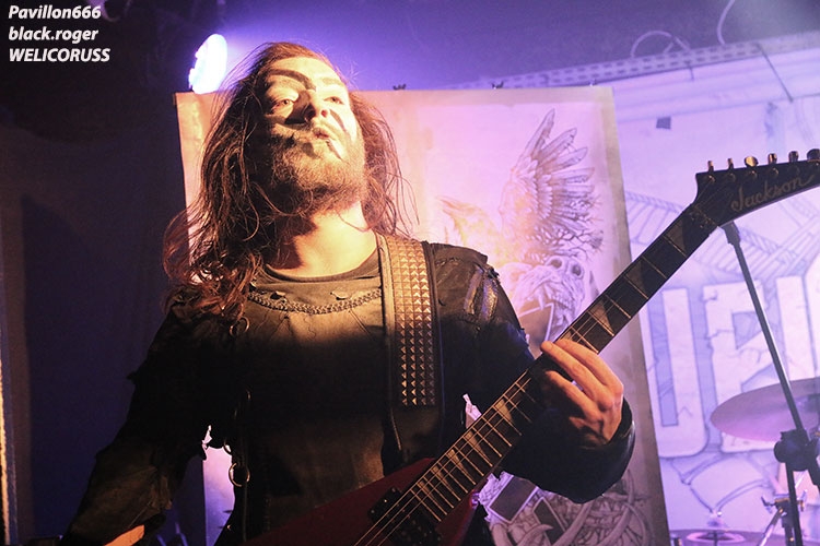 Le back-drop était déjà tendu derrière la scène, les lumières bleues nuit envahissent maintenant cette scène pour accueillir les fameux WELICORUSS venus des steppes Sibériennes afin de nous emmener, à l’aide d’images et de musiques puissantes dans un certain paysage black/death symphonique.