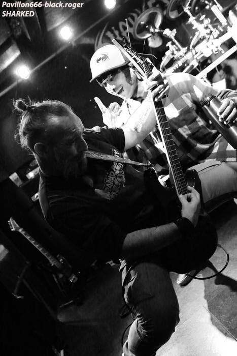 Mais ça va partir enfin au bout d’un moment avec l’Abbé S.M au micro, Tom Roger à la guitare, Djo à la basse, Art Rose au mixage et Thomas aux fûts. Sharked va pouvoir enfin brutaliser ce qu’il nous reste de neurones avec du brutal de chez brutal, du thrash pimenté de death, voire d’élans grind. Avec une présence indiscutable et remarquable du frontman nous sommes collés au plafond ou contre les retours de scène pour certains.