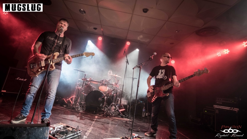 Changement d’ambiance avec Mugslug, un habitué de la scène Zombi Riot puisqu’ils se sont déjà produits pour l’association. Ils profitaient d’ailleurs de cette date pour présenter leur premier EP éponyme de cinq titres. Nos musiciens ont indéniablement l’art de faire profiter au public son expérience de la scène. A travers un mélange de Punk/Rock alternatif et hard-rock bien groovy, nos trois compères vont délivrer un show bien carré aux riffs et mélodies efficaces. La présence scénique est toujours aussi pertinente avec des musiciens qui ne lâchent rien du début à la fin malgré la chaleur étouffante des spotlights. Les titres courts et variés s’enchaînent sans faiblir et Mugslug confirme une fois de plus sa légitimité sur la scène rock alternative. Un très bon concert.