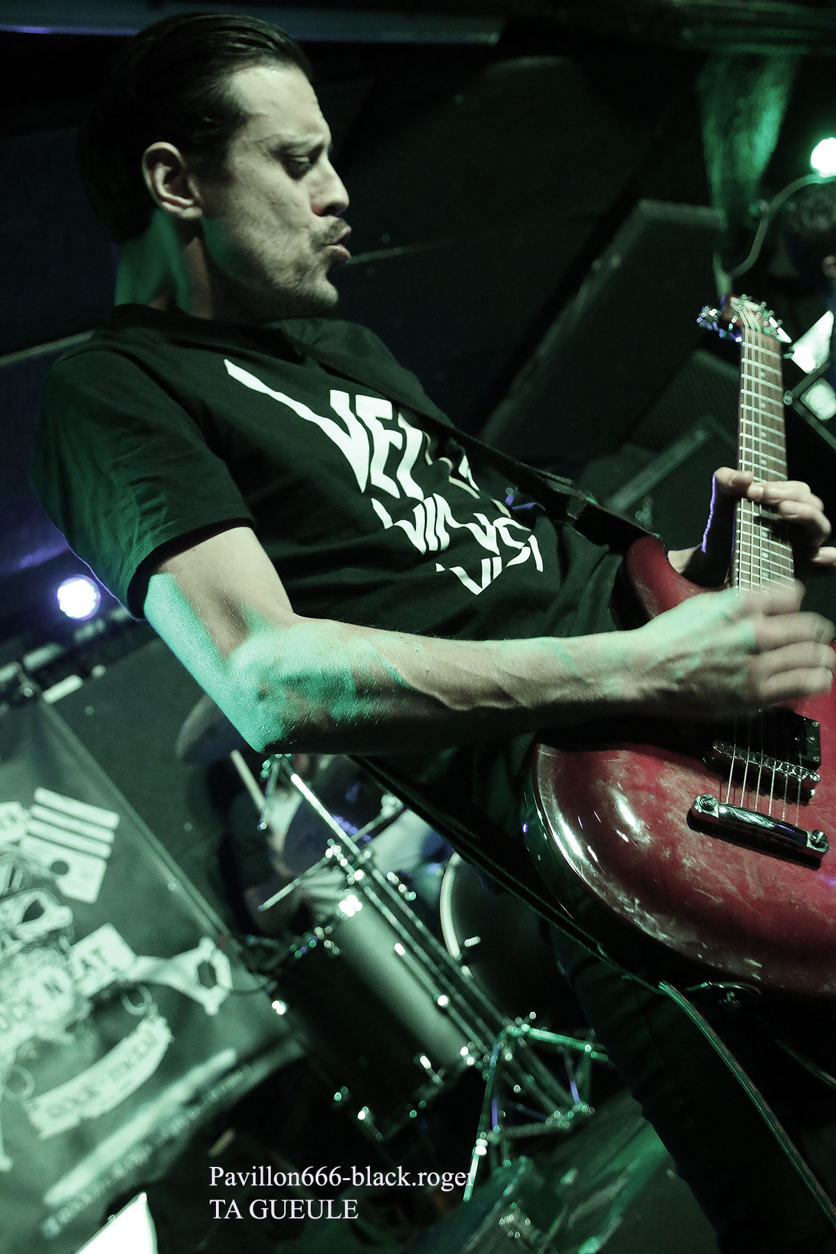 Rien à redire, les nouveaux « boulets rougis » tabassent sec dans tous les sens du terme et on en prend pleine la « gueule » CQFD. Et puis, et puis cette set-list est agrémentée d’anciennes compositions qui nous ont détruit ce qu’il nous reste de neurones depuis longtemps déjà comme « 666 » « strangulation masturbatoire », ou encore leur « tube » intitulé « mangez-moi les burnes ». Bref, le set des Lyonnais n’a pas fait dans la dentelle (qui a dit comme d’habitude ?) et ce fus bon, très bon, excellent quoi et même plus. Alors les gars nous nous sommes régalés car vos shows ont toujours de la « gueule » quand même !