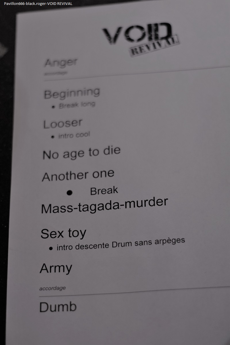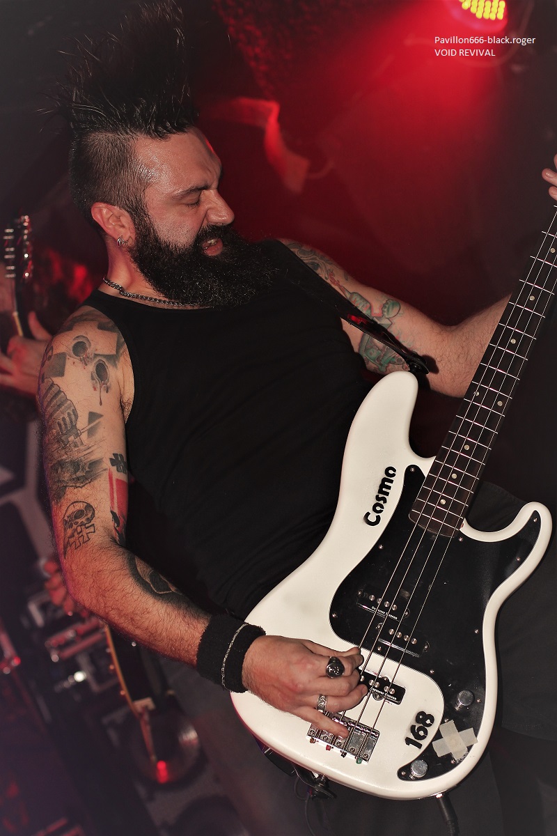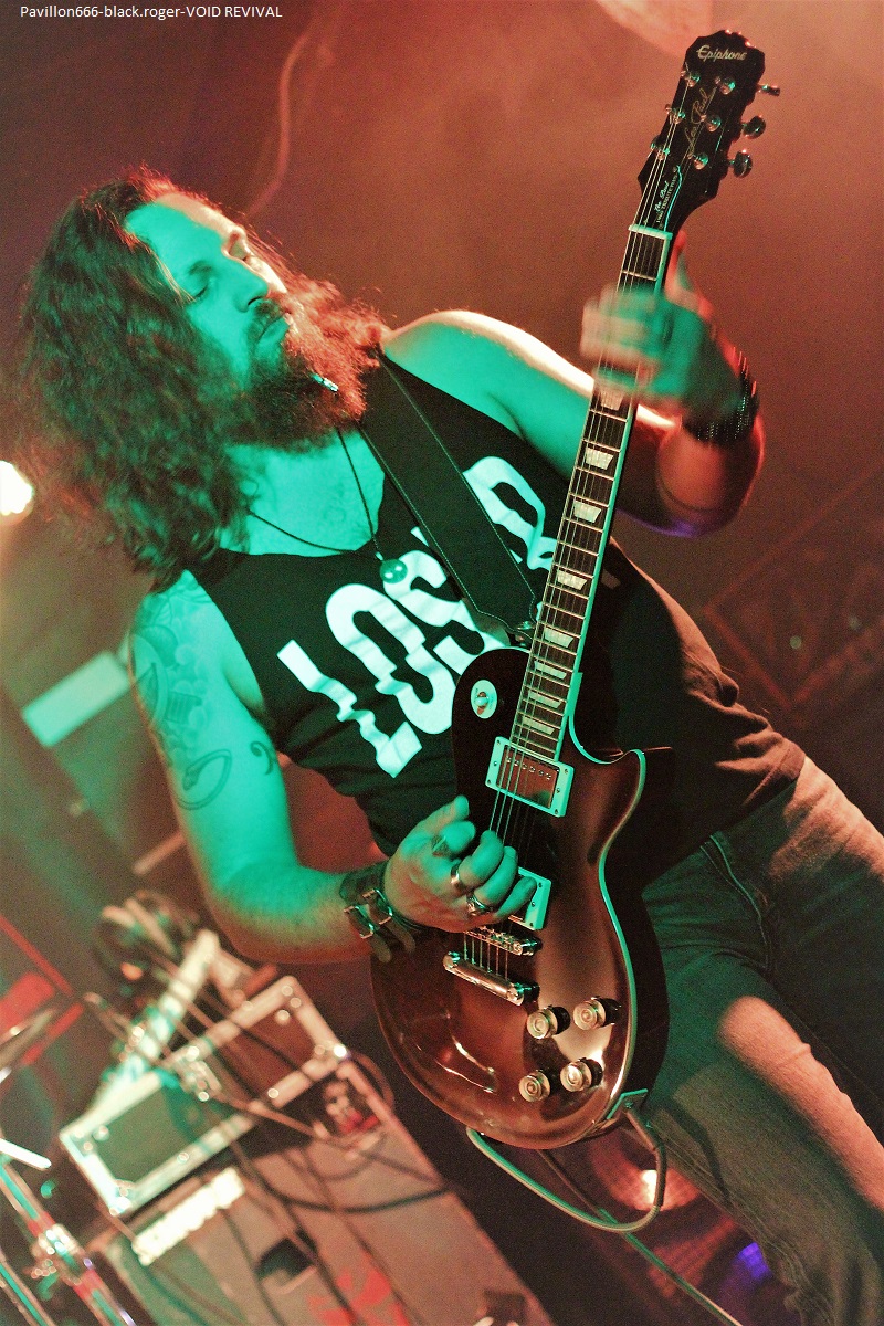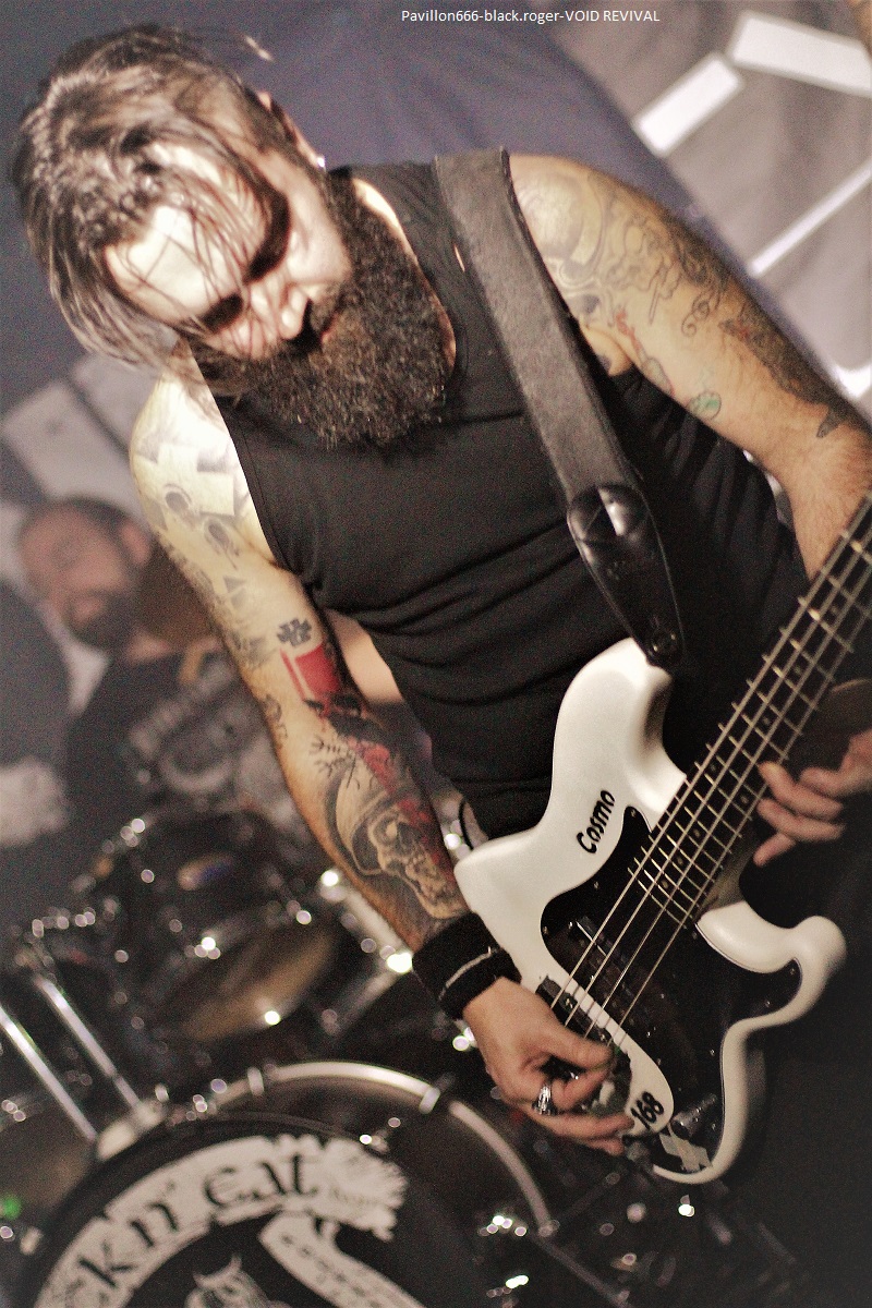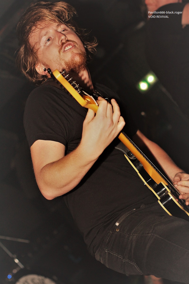 A 20 heures 30, sans tambour ni trompette, mais avec guitares, basse et batterie + un chanteur (un second vocaliste viendra d’ailleurs sur un titre nous rappeler les débuts de la formation), voici donc les Lyonnais de VOID REVIVAL qui s’approprient le premier son (pas le premier sang voyons !).