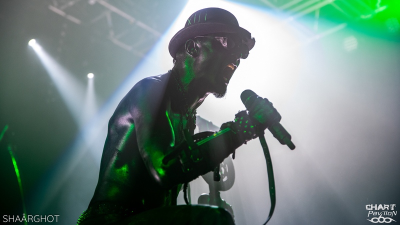 SHAÂRGHOT est de retour à Lyon et on s'en réjouit. Le combo parisien d'indus a fait un sacré bout de chemin depuis son premier album « Vol.I » en 2015. Il faut admettre que l'indus a sa place en France et SHAÂRGHOT a pris l'opportunité d'enfoncer le clou. Oui mais pour se distinguer, sans marcher sur les plate bandes des voisins il faut du travail et SHAÂRGHOT a accompli quelque chose qui à mon sens a tout pour que cela fonctionne auprès du public. A travers sa musique, ses clips et sa mise en scène, la combo a fourni quelque chose de rare. La sauce a pris et on retrouve désormais des fans qui arrivent costumés, dans l'esprit du groupe. C'est quelque chose d'assez peu commun pour être signalé. La « shadow army » est en train de prendre ses positions, ce qui commence à dire long sur l'impact que le groupe a sur les esprits. Et à titre personnel, je mesure ce soir les avancées du groupe que je n'avais pu voir en concert qu'une seule fois dans le bar du Ninkasi Kao en 2018. L'écart est impressionnant. Le groupe était à l'époque franchement intéressant et prometteur. Il est devenu aujourd'hui une vraie tête d'affiche. Tout dans ce concert est à la hauteur. Les effets de lumières sont impeccables. Le groupe se donne à fond et le résultat est là. Il ne manque plus que la sortie d'un prochain album pour SHAÂRGHOT s'impose définitivement comme une valeur sûre de la scène française.