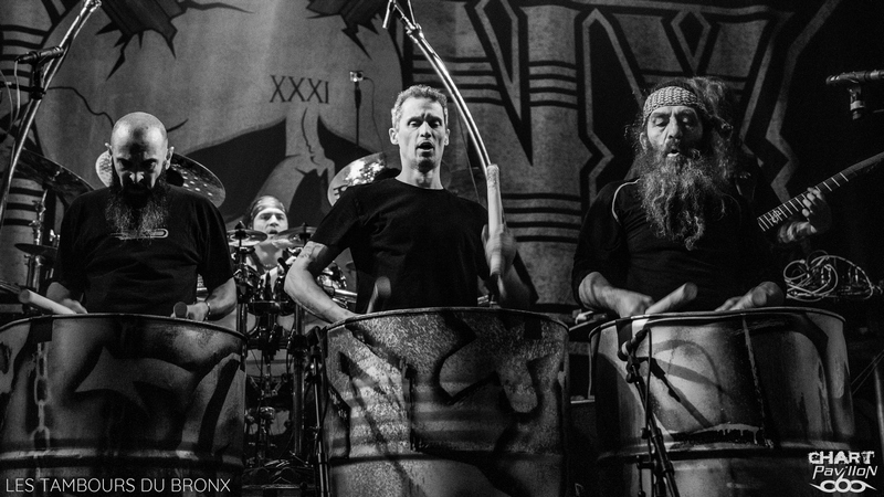 Et puisqu'on parle de valeur sure, on fait rapidement le lien avec les LES TAMBOURS DU BRONX qui depuis plus de 35 ans écument les scènes nationales et internationales. On attend là aussi un nouvel album dans un futur très proche qui sera la suite du fameux « W.O.M.P » sorti en 2018. Mais par chance, nous avons droit un bel aperçu ce soir avec pas moins de 7 morceaux. Cela donne un show bien renouvelé par rapport à ce que le groupe nous proposait sur ses dernières tournées tout en retrouvant quelques incontournables comme le medley SEPULTURA « Refuse/Resist, Roots Bloody Roots, Territory », « Mirage Eternel », la reprise de ROB ZOMBIE « Dragula » et bien d'autres choses. Les nouveaux morceaux viennent s'imbriquer dans cet ensemble apportant une nouvelle touche à ce set. On sent que le groupe a profité de son expérience tirée de son set metal pour travailler ses nouvelles compositions. On sent la maturité et le travail qui en résultent même si bien entendu tout cela devra se confirmer sur l'album. Je n'en doute pas étant donné le résultat de ce concert. LES TAMBOURS DU BRONX forment un bloc sans pareil qui crée une belle onde de choc et amènent des personnes que je n'ai pas l'habitude de voir dans le mosh pit. En guise d'apéritif avant la sortie de l'album tout cela est plus que prometteur.