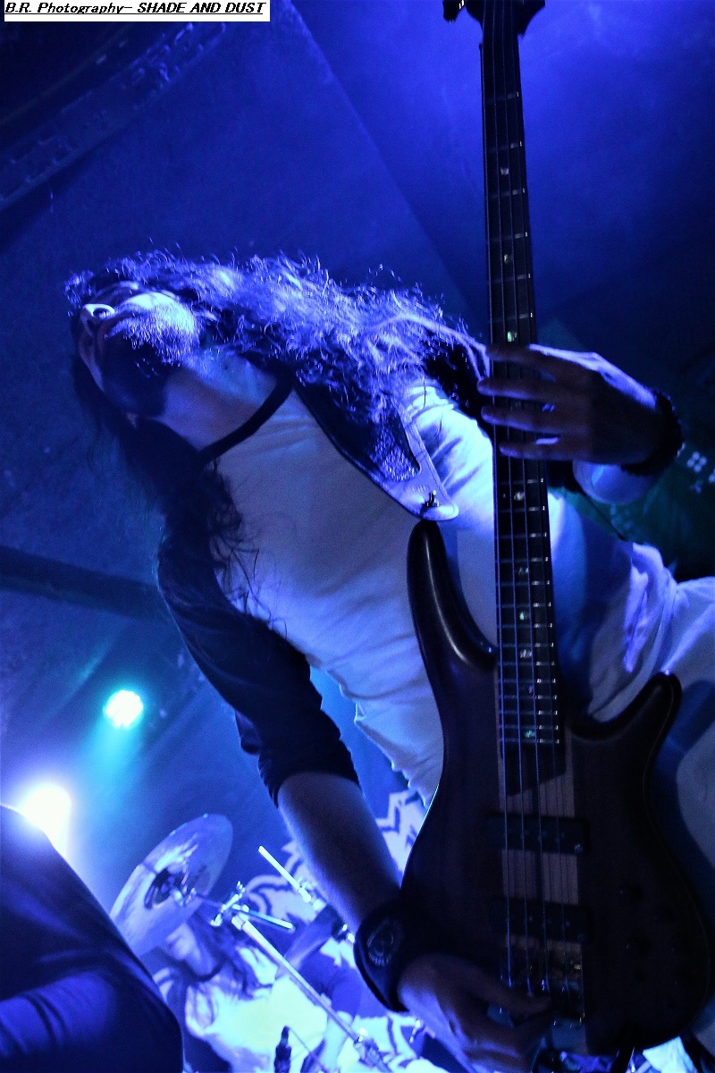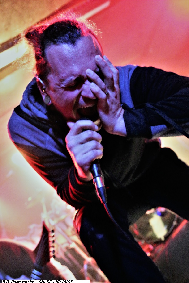 Tiens, des hommes en blanc sur scène, mais ce sont les Nantais de SHADE AND DUST qui se présentent à nous. Leur death se veut progressif surtout pour les premiers titres car ensuite on nous « rentre dans le lard » sans prévenir et ça fait mal, très mal, enfin on aime ce genre de prestation offert par un groupe qui sort des sentiers battus, c'était bon enfin quoi !