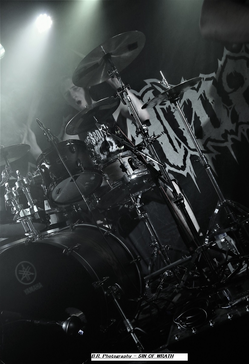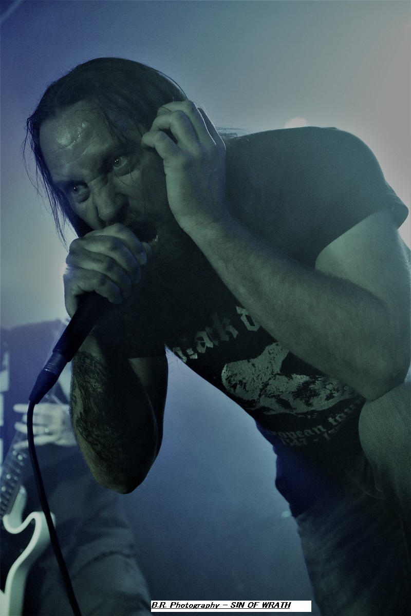Messieurs les Lyonnais, tirez les premiers ! C'est donc à SIN OF WRATH que revient l'honneur d'ouvrir les hostilités avec un certain black-death qui place d'entrée de jeu la barre bien haute pour cette soirée qui s'annonce brutale de chez brutal. Une petite demi-heure pour eux, alors ils ont mis le paquet sans compromis, sans faux semblant.