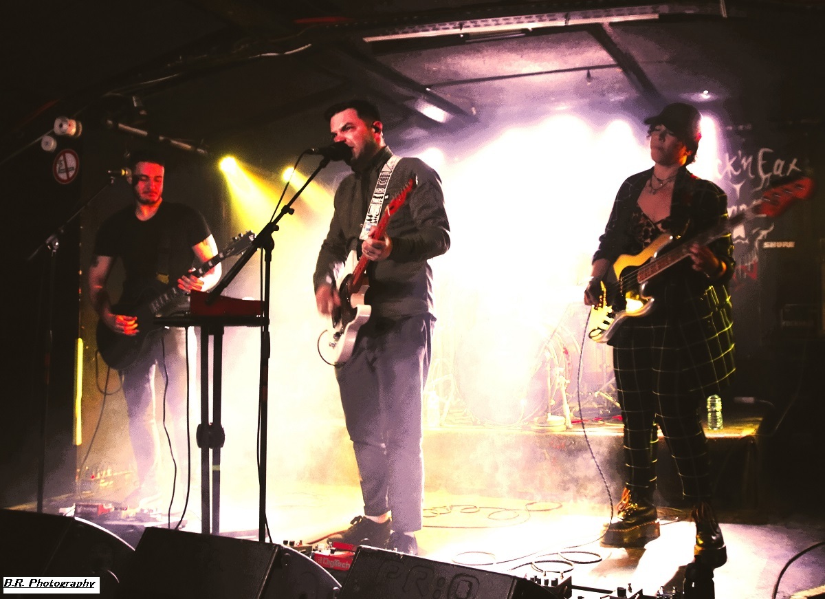 C'est SUNDAY PANIC, nouveau venu dans la scène cold-wave Lyonnaise qui ouvre cette soirée. Voilà donc ce groupe devant nous qui navigue sur les eaux froides d'un post-punk aux envies British avec à la clé une voix déchirée, accompagnée de synthés, d'une basse prédominante, des riffs lames de rasoir et une batterie plombée.