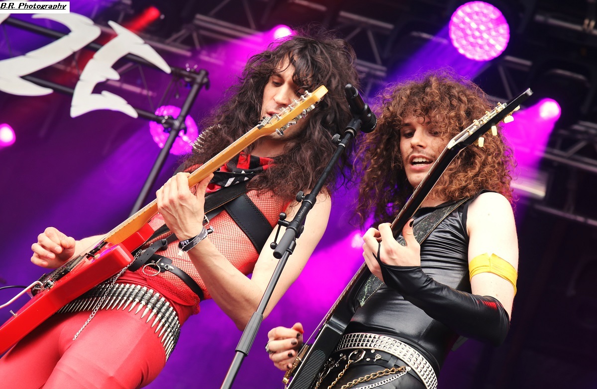 Changement de scène ensuite, changement de décor, changement de style avec, sur le Terminal 1, le heavy metal d'Animalize. Avec eux, nous retrouvons tous les clichés de la scène heavy des années 80 avec en filigrane des groupes qui ont marqué l'époque comme W.A.S.P, Annihilator, Tokyo Blade, ou encore Loudness et Warning. Animalize redonne donc un coup de jeune au heavy metal à la française en y ajoutant des avancées plus modernes lorgnant parfois vers un certain thrash et un certain hardcore (oui, oui !). Bien, après cette démonstration sans faute cet après-midi à Montcul, on peut dire que ces jeunes loups lyonnais en ont dans leurs « moule-burnes » et vont aller loin, il me semble !