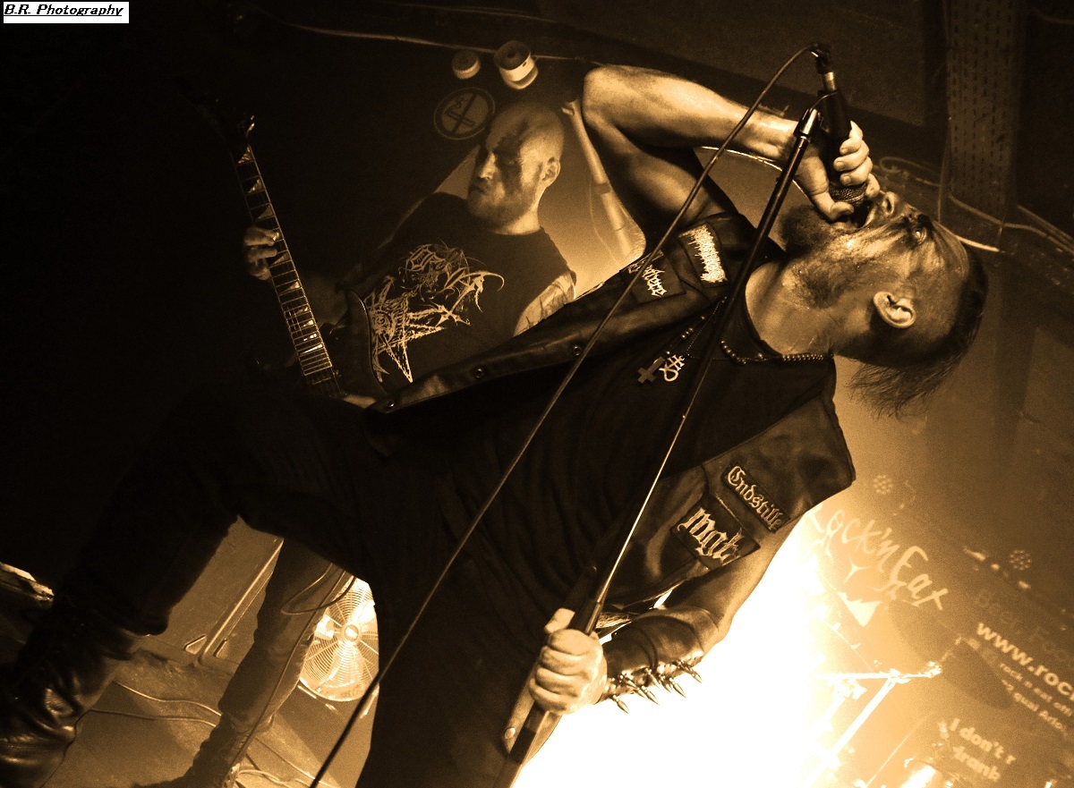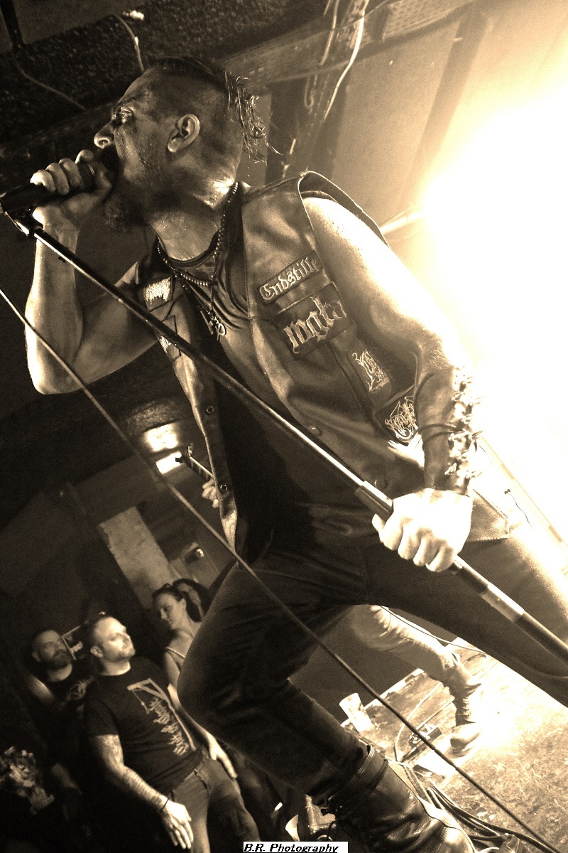 Avec le second groupe québécois de la soirée, DELETERE, nous entrons dans une autre dimension du metal noir. Celle d'un metal d'écorché vif, foutredieu, dans une certaine nuit souillée et dans des abîmes de putréfaction. Tout ceci est propulsé par un chanteur à la voix d'outre-tombe, qui nous force en quelque sorte à adhérer à ses propos en nous imposant sa présence brutale et perverse. À côté et derrière lui, nous avons des guitares pesantes et un duo basse-batterie incroyablement percutant. Et si, au départ, l'assistance reste assez statique et timide, force est de constater qu'au fur et à mesure des envois, tout va partir en « live » dans le public, qui se révèle de plus en plus excité par les provocations du groupe. Et ce fut donc un certain chaos qui s'est installé dans les caves du quai Arloing ce jeudi soir de juillet. Inutile de vous dire que Délétère a mis tout le monde d'accord, ni plus, ni moins, aargh !