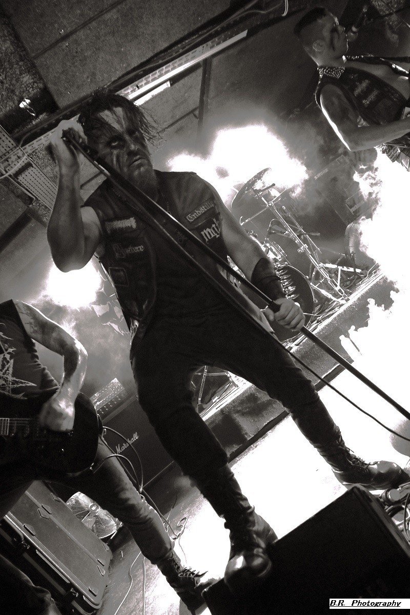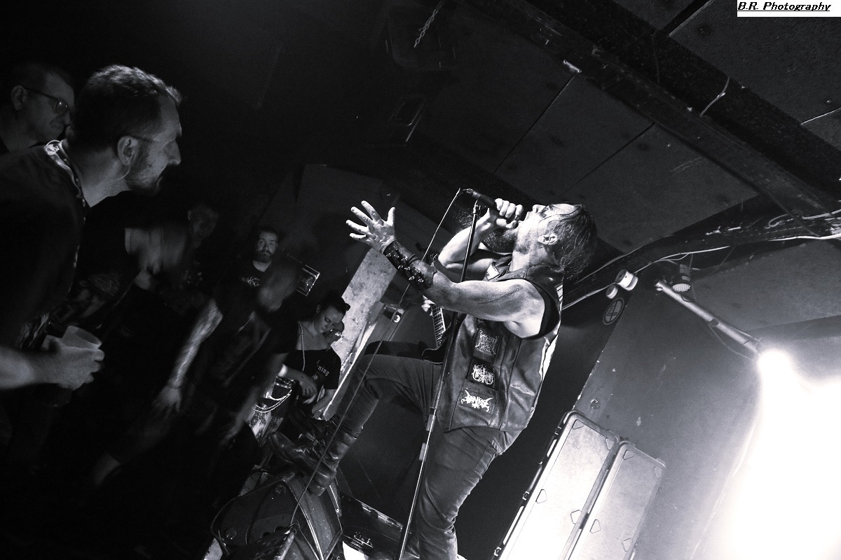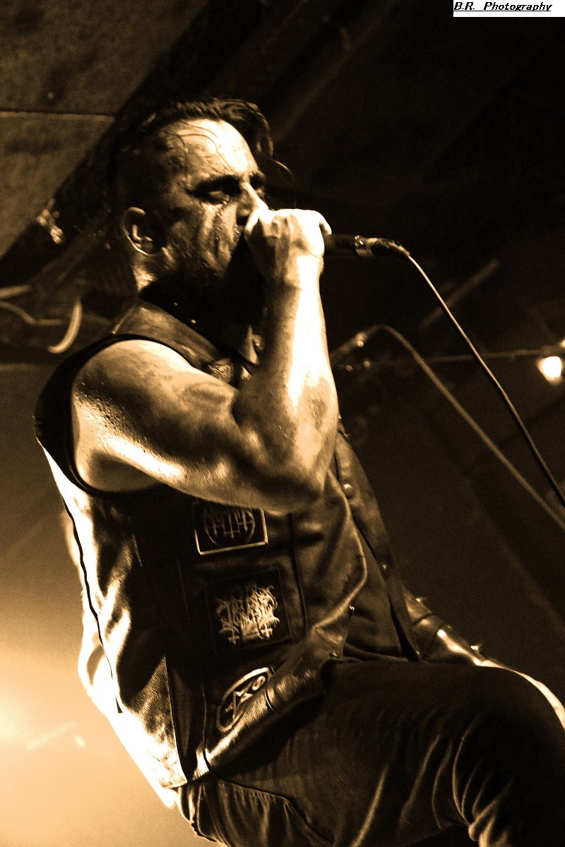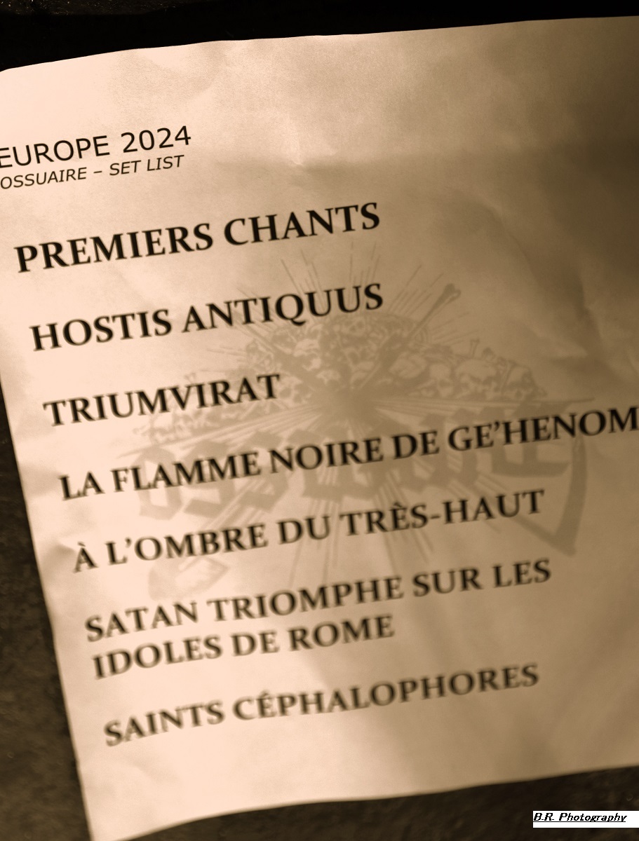 Afin de débuter ce concert, ce sont ceux de Montréal, OSSUAIRE, qui nous font profiter d'un mix de puissance gluante qui vous colle aux tripes avec des mélodies venimeuses sur des paroles véhémentes d'une rare intensité. Cette horde québécoise nous installe directement dans leur univers mort et tragique à la fois. Leur messe noire, durant laquelle nous avions déjà « communié » lors de l'écoute de leurs enregistrements de 2019, « Premier Chants / Derniers Chants », concrétisée par leur EP « Trimvirat », se révèle triomphante en live. Ossuaire se révèle maintenant comme une valeur sûre du metal noir d'outre-Atlantique actuel. Amen !