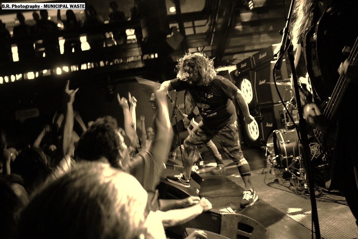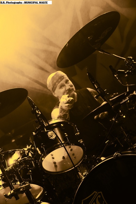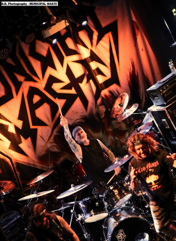 Avec MUNICIPAL WASTE l'ambiance monte nettement de plusieurs crans avec dès le premier tiutre « Garbage Stomp » où le public s'envoie en l'air et ouù le « shampoing » aux boissons ,houblonnées est de rigueur.