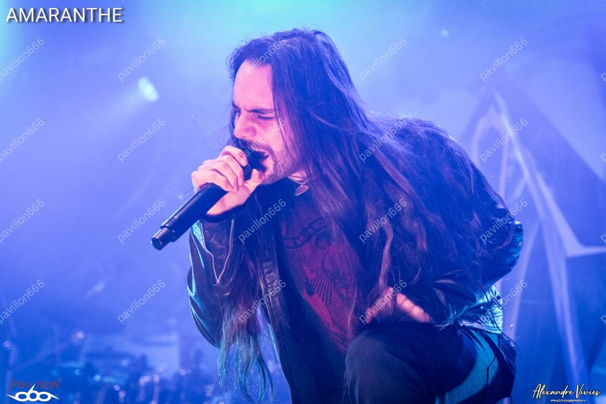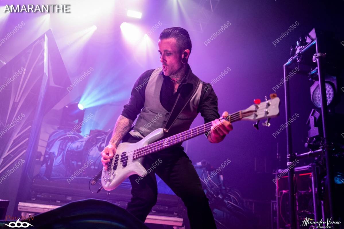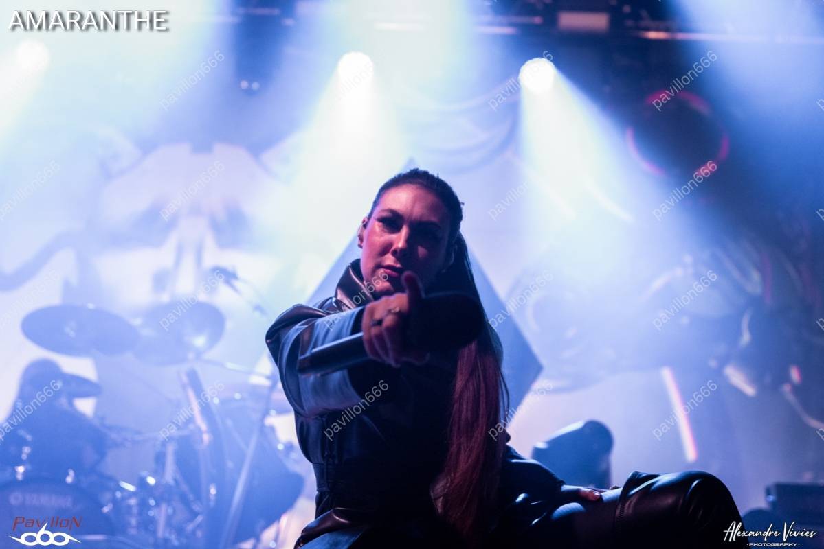La fosse est quasiment pleine pour l’entrée en scène des Suédois d’Amaranthe, qui débarquent sous de chaleureuses acclamations et ouvrent à pleine puissance avec « Fearless » ! Le combo aux trois vocalistes est résolument en forme et sait comment animer la salle. Son power metal moderne fait mouche sur le public et le show est très visuel, entre les musiciens qui n’hésitent pas à attiser la ferveur du public et de jolis décors mis en valeur par des jeux de lumières colorés. Les fans sont invités à chanter en chœurs sur « PvP », un hymne survitaminé écrit pour l’équipe d’e-sport de Suède à l’occasion des championnats du monde de 2021, qui commence à sérieusement embraser le cœur de la fosse.