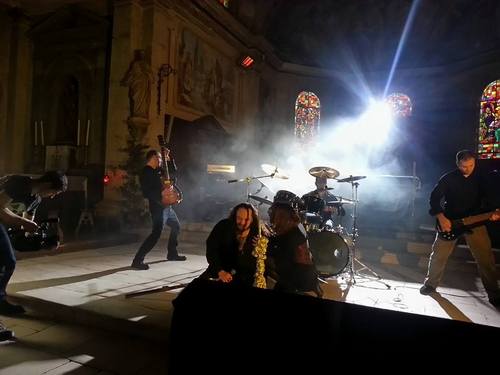 ![]() 1) Bonjour à vous AKROMA. Pour nos lecteurs, une petite présentation s'impose. La première idée d’AkromA a germé dans mon esprit vers juin 2003. J’étais en train d’écrire des titres depuis quelques temps en vue du prochain Elvaron mais certains riffs étaient vraiment trop « extrêmes ». J’ai donc mis tout ça de côté. Rapidement, je me suis dit que ça serait sympa de trouver un chanteur de black pour ces riffs isolés et j’ai tout de suite pensé à Bob. Avant qu’il ne rejoigne Scarve, il chantait dans un groupe de Black Metal à Nancy (Tourmented Souls) et j’avais enregistré leur première démo en 1998. Il a ensuite quitté ce groupe puis rejoint Scarve. Je me disais qu’il devait être trop occupé pour se pencher sur mes futures compos… Et puis on s’est rencontrés par hasard en septembre 2003. Il m’a dit qu’il venait de quitter Scarve principalement car il ne souhaitait pas tourner. Je connaissais bien ses capacités vocales et j’avais très envie de bosser avec lui. Je lui ai exposé le projet d’un album de black metal à tendance progressive, n’ayant alors que quelques riffs dans mes tiroirs… Et 11 ans plus tard nous voila avec 3 albums studio ! 2) Tout vos albums sont des sortes de concept-albums. Pouvez-vous nous en parler plus en détail ? Notre premier album « Sept » s’articule autour des 7 péchés capitaux. Un thème déjà abordé mainte fois mais que nous avons essayé d’envisager sous un œil novateur. Alain et moi avons élaboré un scénario en 7 parties, traitant chacune d’un péché avec un personnage principal récurent à savoir un avocat. A mesure que le projet avançait, les idées sont venues : d’abord les 7 titres dans 7 tonalités, puis 7 minutes exactement, 7 guitaristes solistes et des références multiples au chiffre 7 aussi bien dans la musique que dans les paroles. Concernant notre deuxième album « Seth », il se trouve que Bob est passionné par l’Egypte ancienne et qu’il n’a eut aucun mal à proposer un scénario original autour de ce thème basé sur la vengeance du Dieu Seth. Il revient sur terre pour faire subir à la population les 10 plaies d’Egypte telles qu’elles sont évoquées dans la Bible, au rythme d’une plaie par jour !! Ca permettait de développer un concept avec tout un folklore propre à l’Egypte Ancienne avec une occurrence moderne puisque Seth revient sur terre de nos jours. Le but était de rendre l’histoire plausible en se rapportant au maximum à des faits avérés, des personnages issus de la mythologie. Donc ça demande d’importantes recherches bibliographiques évidemment. De plus, le concept se déroule dans un cadre géographique et sociologique bien précis ; nous évoquons les corridas espagnoles, le chikungunya en Tanzanie ; l’histoire se déroule à Venise, New-York, Tokyo… Sur cet album nous avons de nouveau invité des guitaristes pour les solos, soit 10 protagonistes issus de groupes de metal Français. Nous avons commencé à travailler sur notre troisième album, « La Cène », début 2010 et nous voulions développer un scénario autour des 12 apôtres. Dans un souci de cohérence il nous fallait avoir des informations précises pour notre concept. L’abbé Pierre Binsinger est un ami et il suit AkromA depuis le premier album et il a accepté d’être consultant et donc de faire tout le travail de recherche sur les apôtres dans les évangiles. Il lui a donc fallu compiler, vérifier en fonction de notre cahier des charges : qui sont les 12 apôtres, quels métiers exerçaient-ils, comment sont-ils morts ? Ensuite comme pour « Seth » j’ai attendu d’avoir les textes d’Alain pour composer. Je peux ainsi restituer les ambiances induites par les paroles et adapter la musique et les nuances en fonction de ce qui se déroule dans l’histoire. C’est un travail passionnant et j’ai pu expérimenter beaucoup de choses au niveau des arrangements et des orchestrations. Le concept de « La Cène » impliquait d’avoir 12 invités interprétant chacun un apôtre dans un titre de l’album et donc 12 chanteurs issus de groupes de métal extrême Français. 3) Pourquoi avoir, pour chacun de vos CDs, choisi un thème religieux ? Il n’y a pas de raison fondatrice de tout ça. J’avais le concept des 7 péchés capitaux avant même de former AkromA. Ensuite Alain m’a proposé le thème des 10 plaies d’Egypte car c’est un passionné de ce pays et de l’égyptologie en général. Il se trouve que c’est aussi un thème tiré de la Bible tout comme les 7 péchés capitaux. Enfin pour « La Cène » c’était néanmoins assez délibéré de continuer dans cette voix. Tout cela n’est que prétexte à écrire des scénari. Nous nous inspirons de faits évoqués dans la Bible de manière détournée, c’est du folklore ni plus ni moins. Nous ne prenons pas parti ni pour ni contre la religion catholique, ni pour aucune autre religion d’ailleurs. 4) Je suppose que contacter tous les fameux « apôtres » a été difficile ? Oui, difficile et chronophage. Il y a eu des choix assez évident bien entendu, je pense à des chanteurs qui sont des amis ou des proches : Patrick de Mortuary, Frank de La Horde, Laurent de Deficiency, Manu d’Avalon. Nous avons par ailleurs contacté des chanteurs dont nous admirons et respectons le travail et enfin quelques autres qui nous ont été chaudement recommandés pour rejoindre le projet. Nous avons essuyé quelques refus et quelques défections au fil du temps mais au final nous avons fédéré une très belle équipe de vocalistes français. 5) Les invités ont ils choisi leur musique, ou avez vous composé en fonction de la voix de chacun ? Ils ne choisissent pas leur rôle, on impose le morceau ; surtout pour une question de gestion et de bon sens. On évite ainsi les doublons et les choix cornéliens. Par extension, non je ne compose pas pour un chanteur en particulier car je ne sais tout